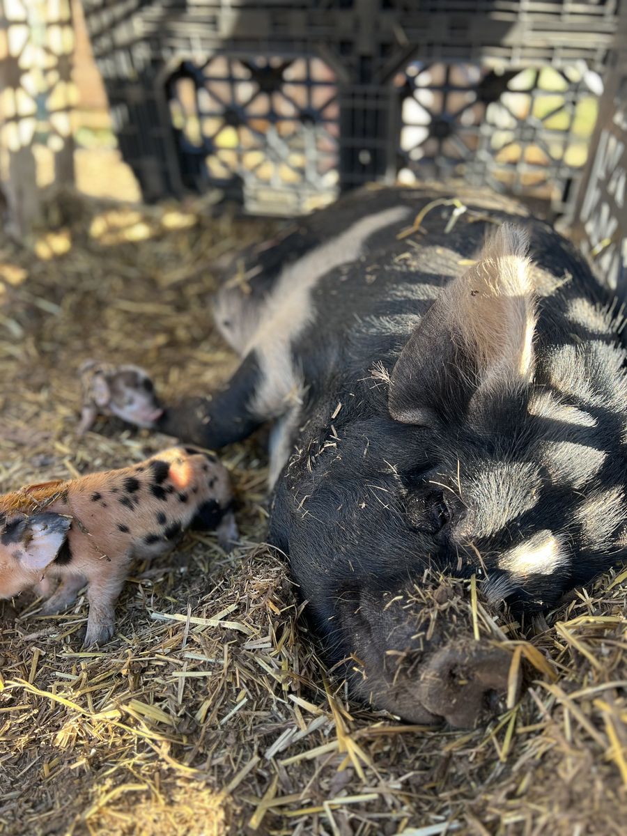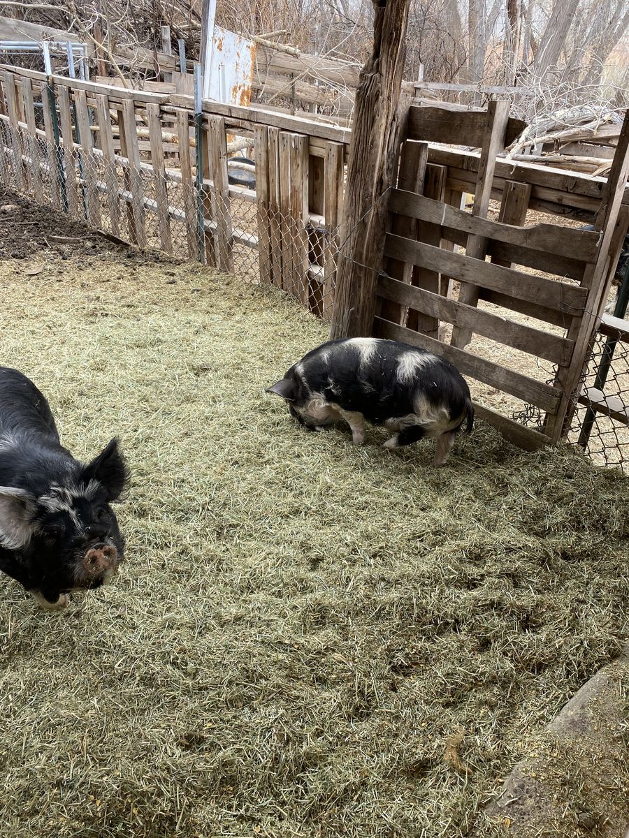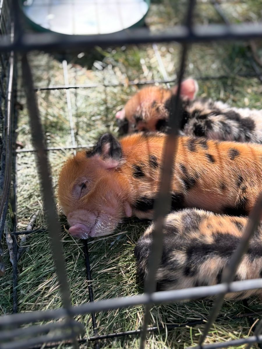 ApplePayBorn July 2025. Currently 8 months old. These pigs prefer hay over grain but eat both.