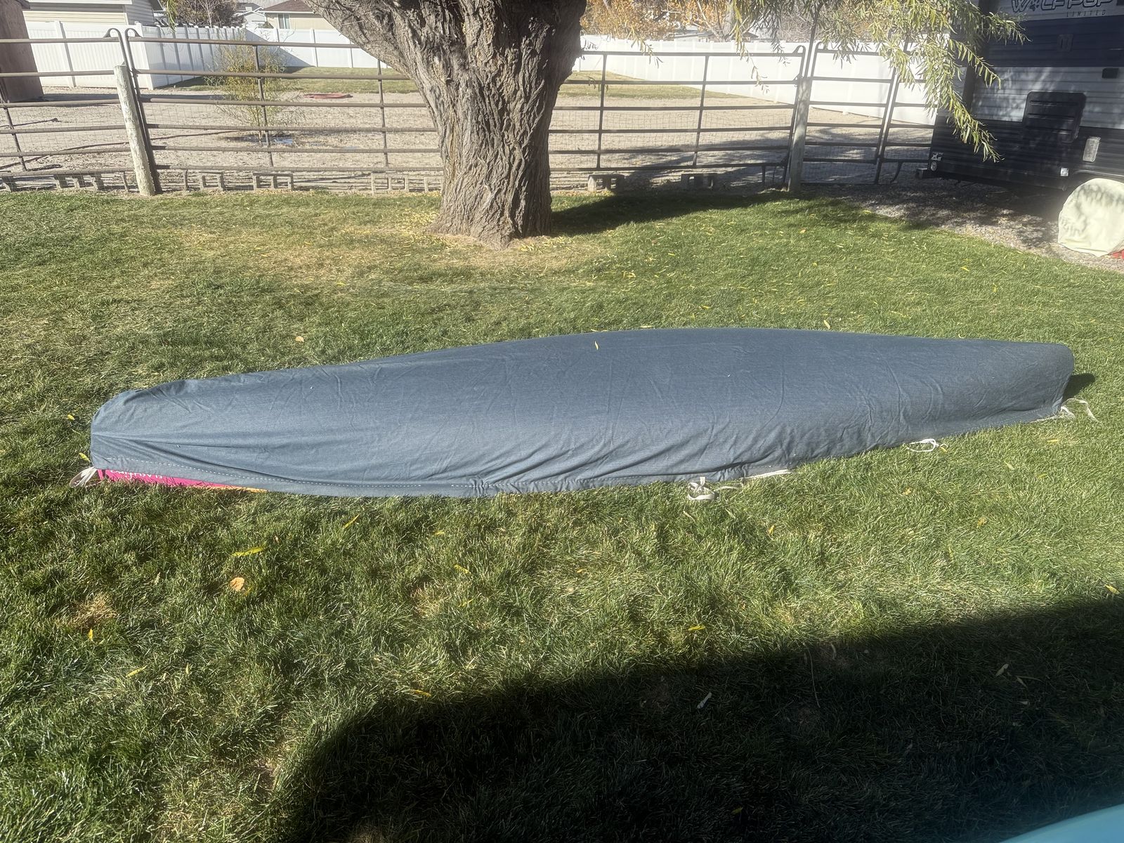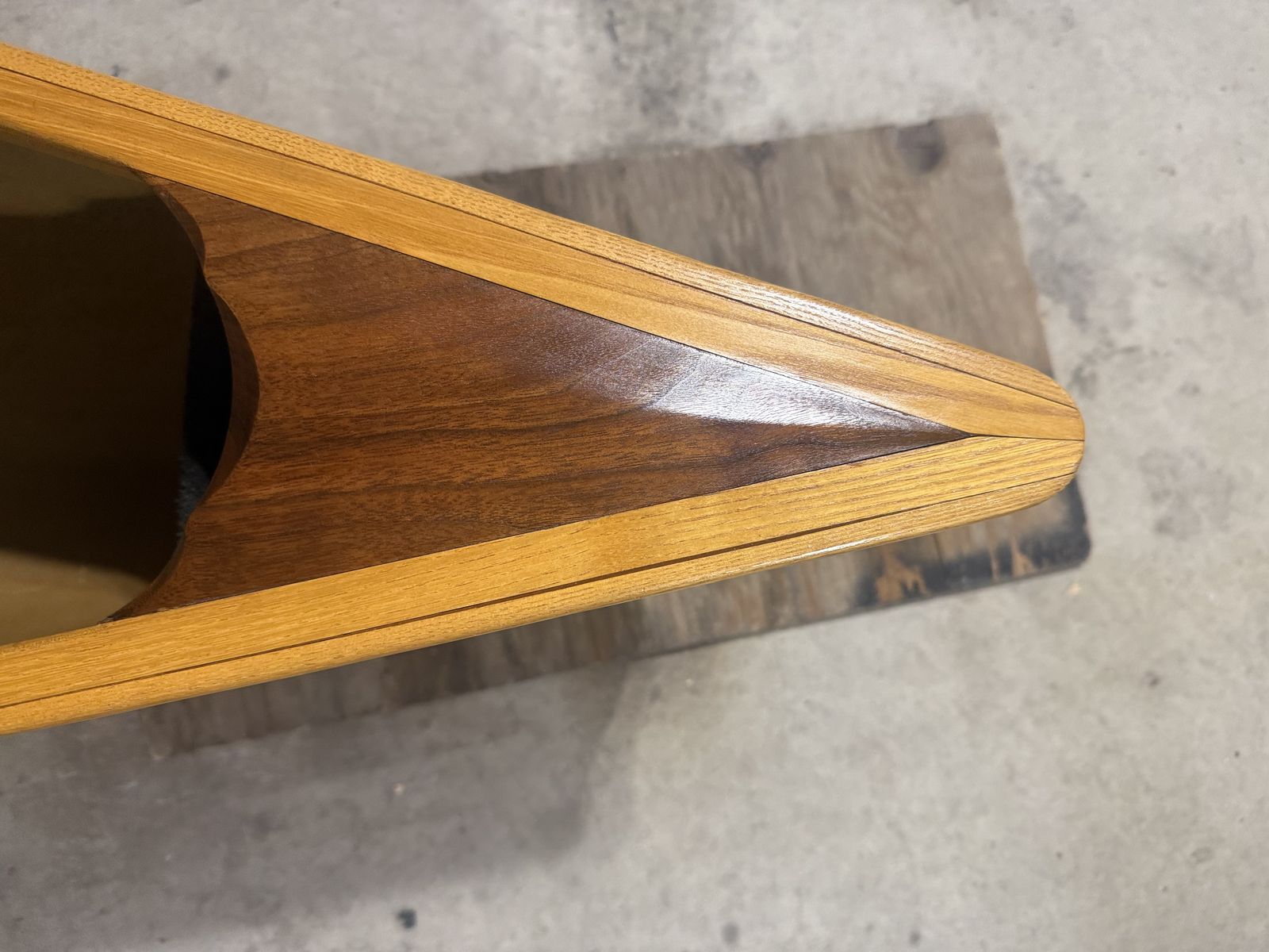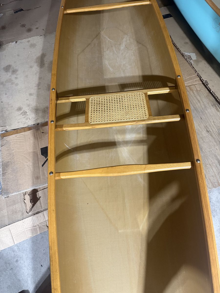Immaculate Kevlar Flashfire solo canoe! No longer manufactured, weighs about 35 pounds. Hand written inscription and signature of designer Dave Yost. Located in Riverton.