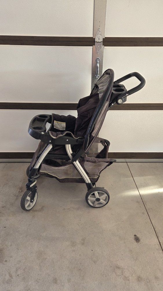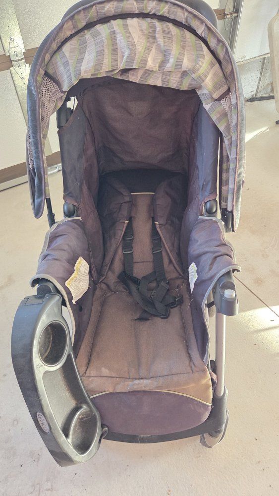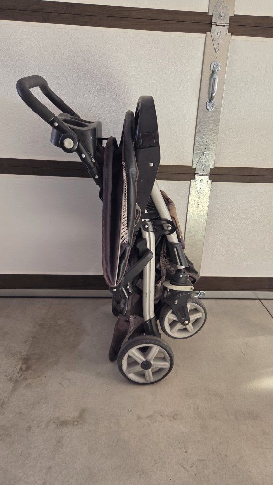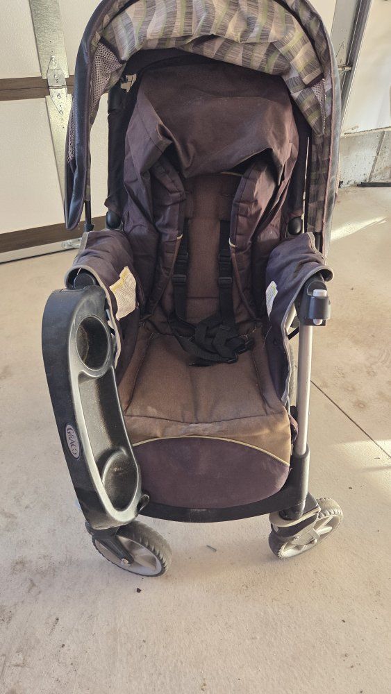 the stroller works great and collapses down well. it can take Graco Quick Connect car seats and the seat is big enough for one kid sitting up or can be laid all the way down for a kid laying down or also big enough for two kids when the back is laid down