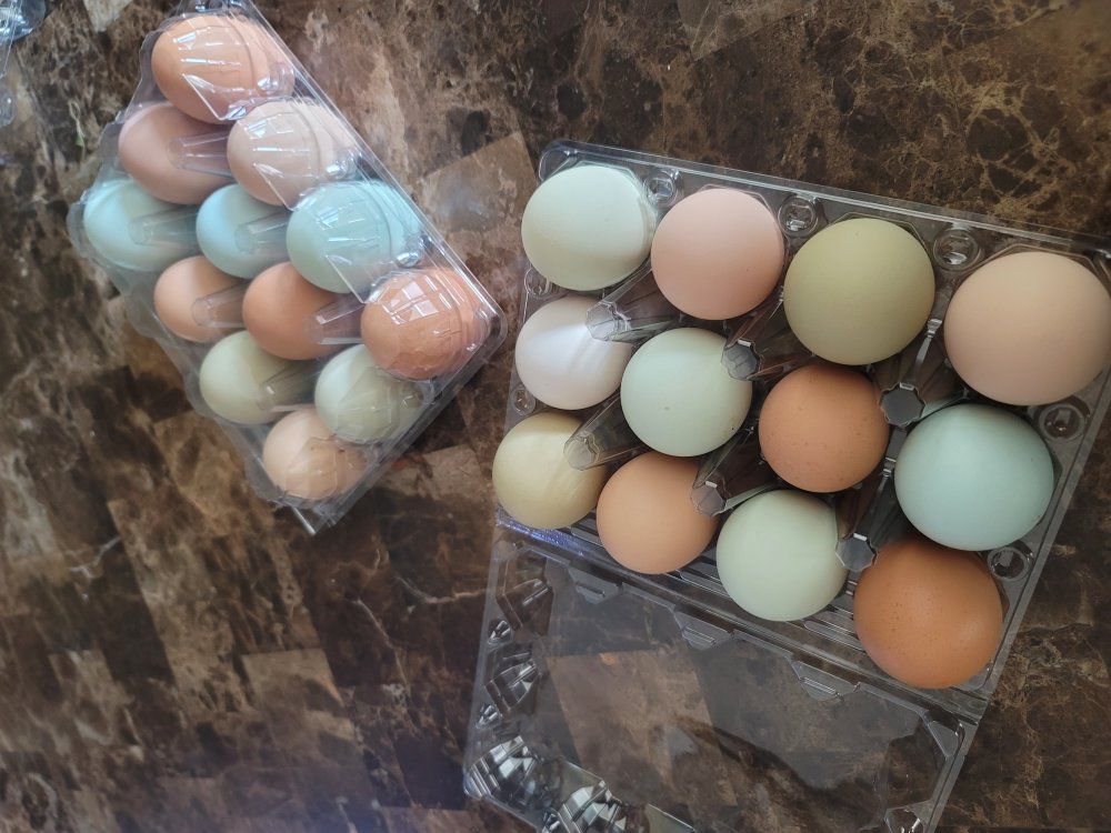 VenmoFresh Eggs from healthy Hens, my girls are free range along with High Protien Nutrient Rich feed. Unwashed Eggs to provide longer countertop or refridgerator storage. $4 a Dozen. Please recycle your cartons by bringing them back each time you get more eggs!