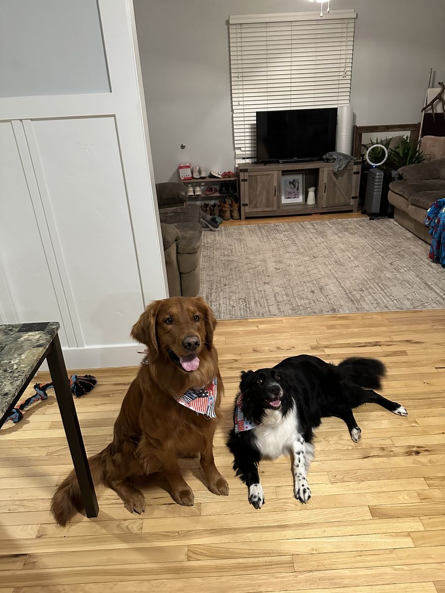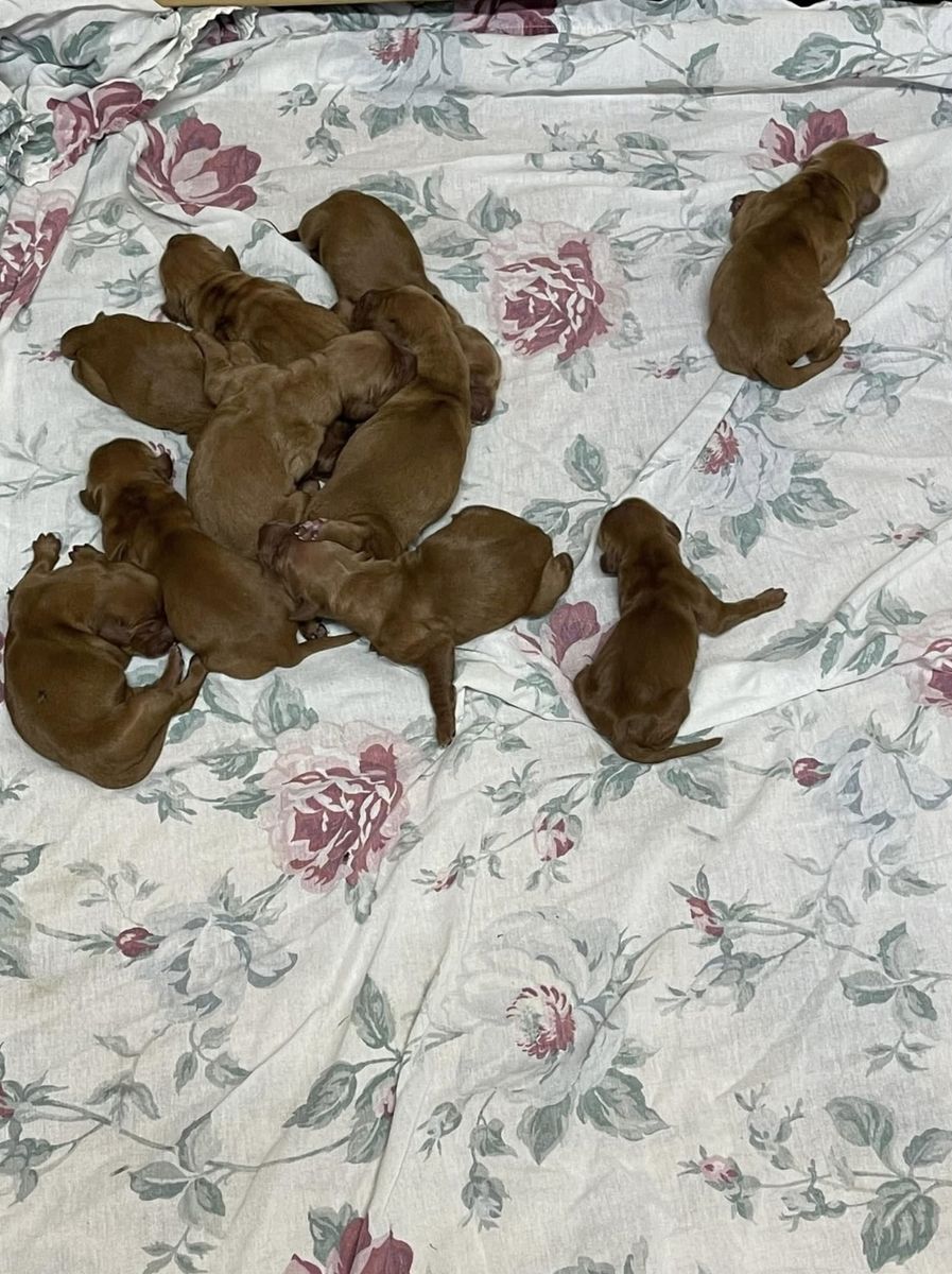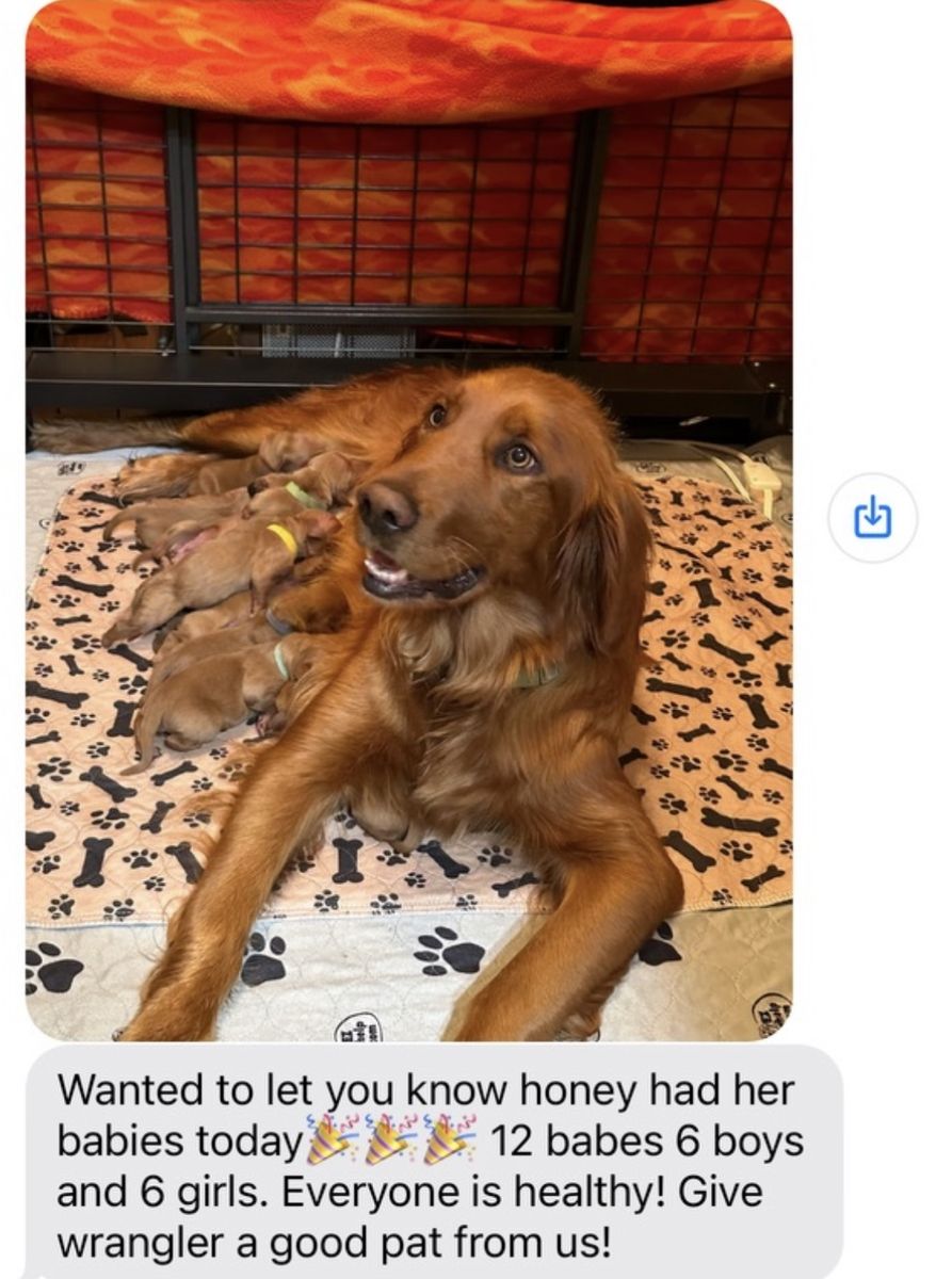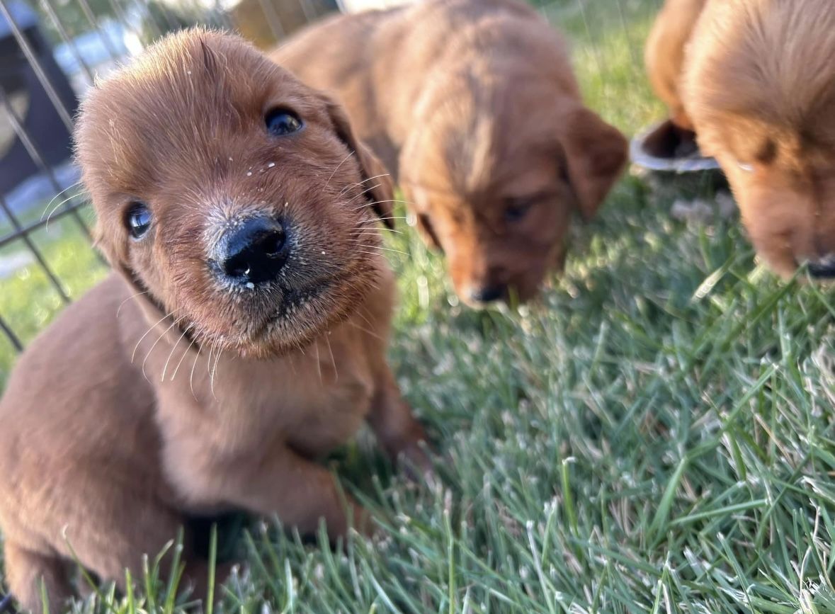 Wrangler is a 95 lb retriever with a red coat and muscular build. He is a great all around dog, house trained, family friendly, and retrieves waterfowl.