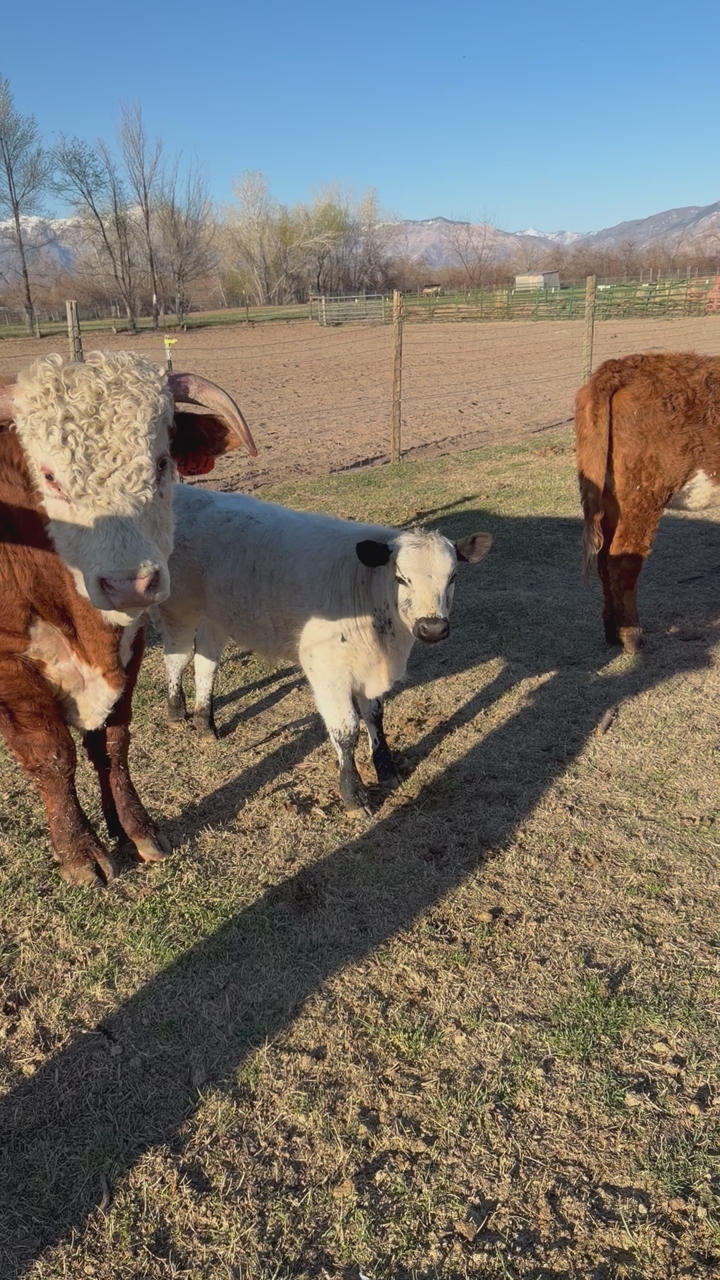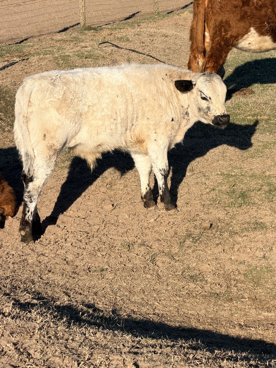 ApplePayHe is out of a nice angus cow. Pretty docile and easy on fences. Growing like crazy and ready for pasture. Probably weighs close to 350. Still a bull, but I can band him for you.