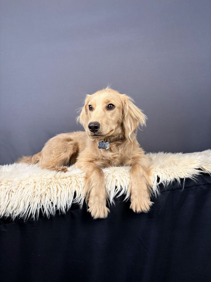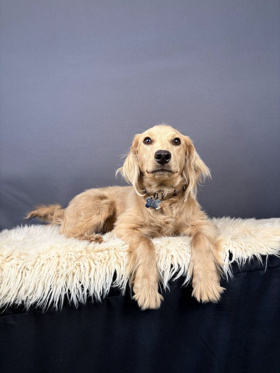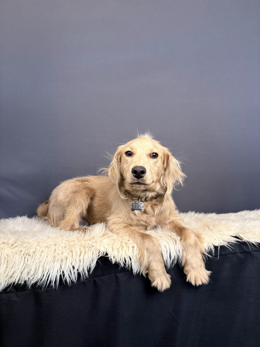 Gus is an 8-month-old mini golden retriever with a ton of potential and a whole lot of love to give — he just needs the right home to help him shine. He’s a handsome light tan boy who we expect to mature at around 35–45 pounds.