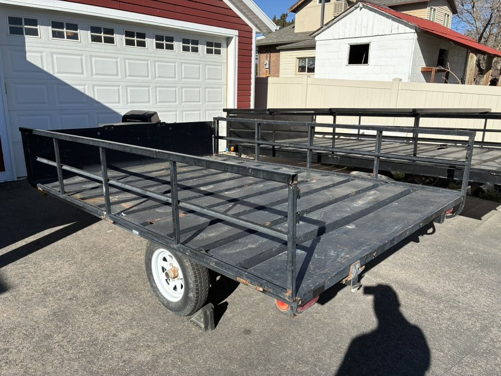 VenmoThis is a full metal trailer. Echo builds them tough and they come with a tongue box. This trailer has a bifold ramp on one side. The tires are in good condition and it pulls great.