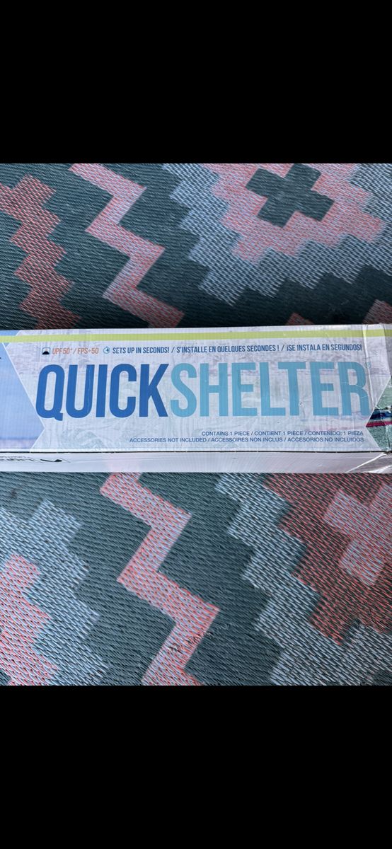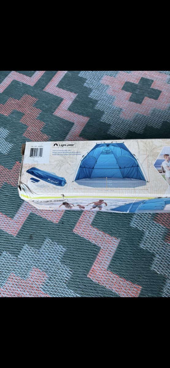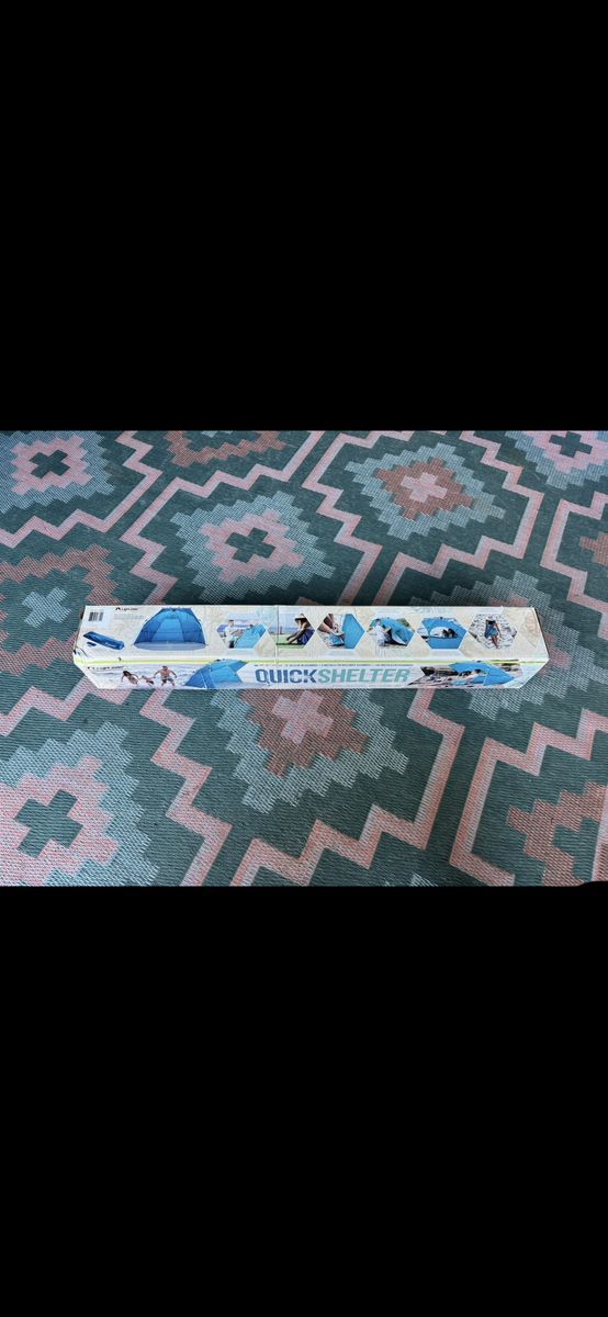 Brand new and never been used. Great for the beach or picnics. Sets up quickly, has stakes to anchor down and a storage bag. It’s big with plenty of room for 2 adults plus your gear.