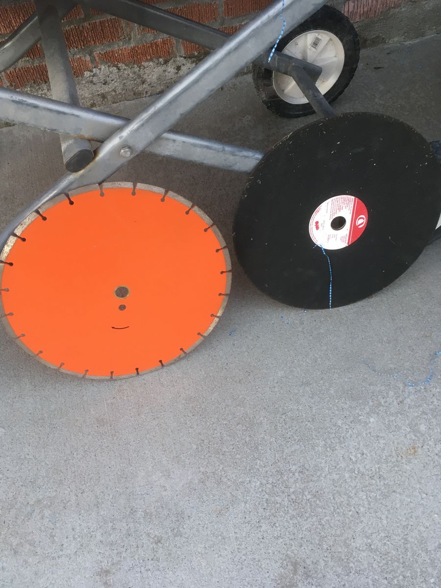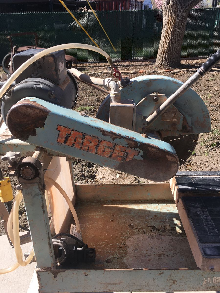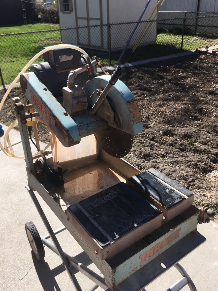 14 inch target brick saw with two extra blades one for metal. with water pump and stand