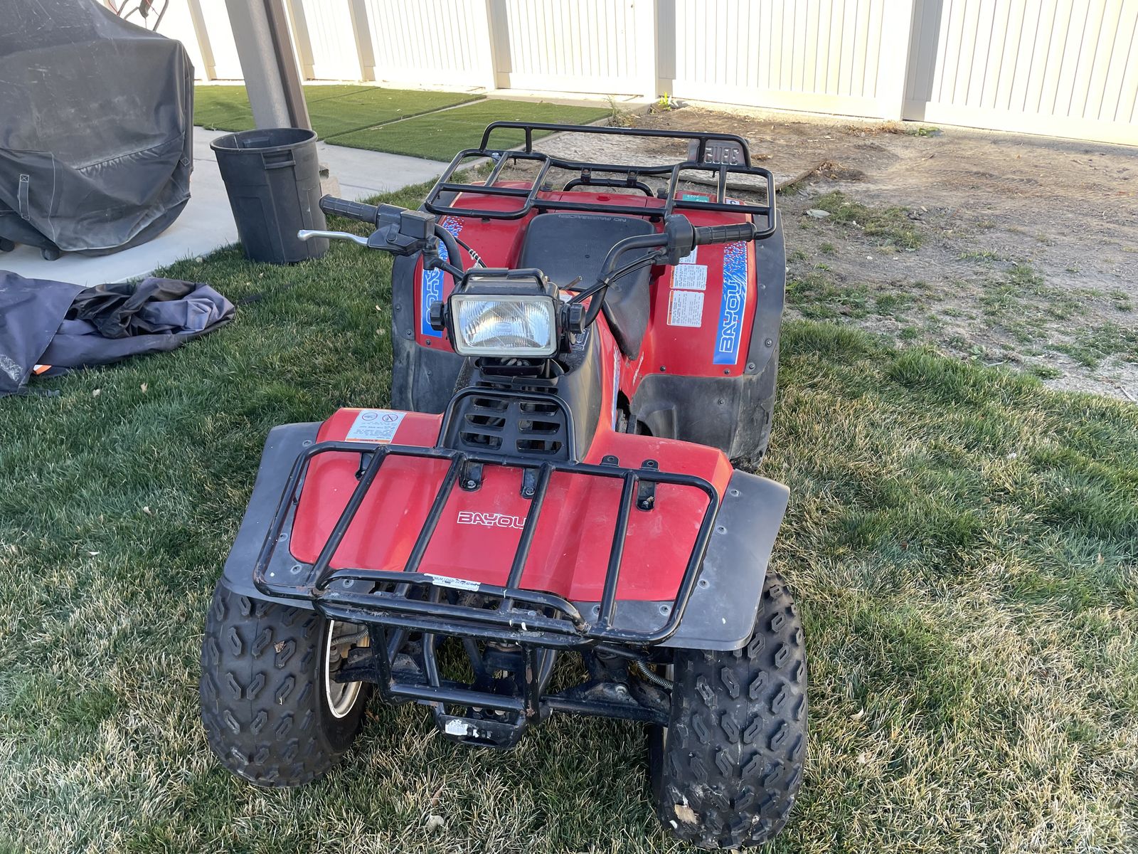 ATV for sale. 1993 Kawasaki bayou 300. Runs great. Manual transmission. I put new tires in the front a couple of years ago. Fun little ATV to drive and easy to shift gears. Asking $2000