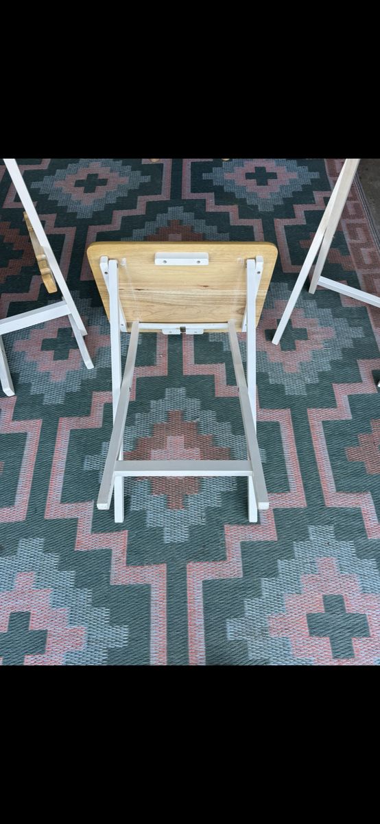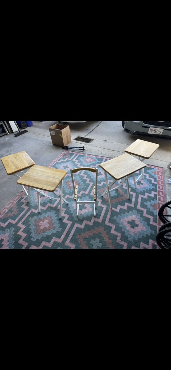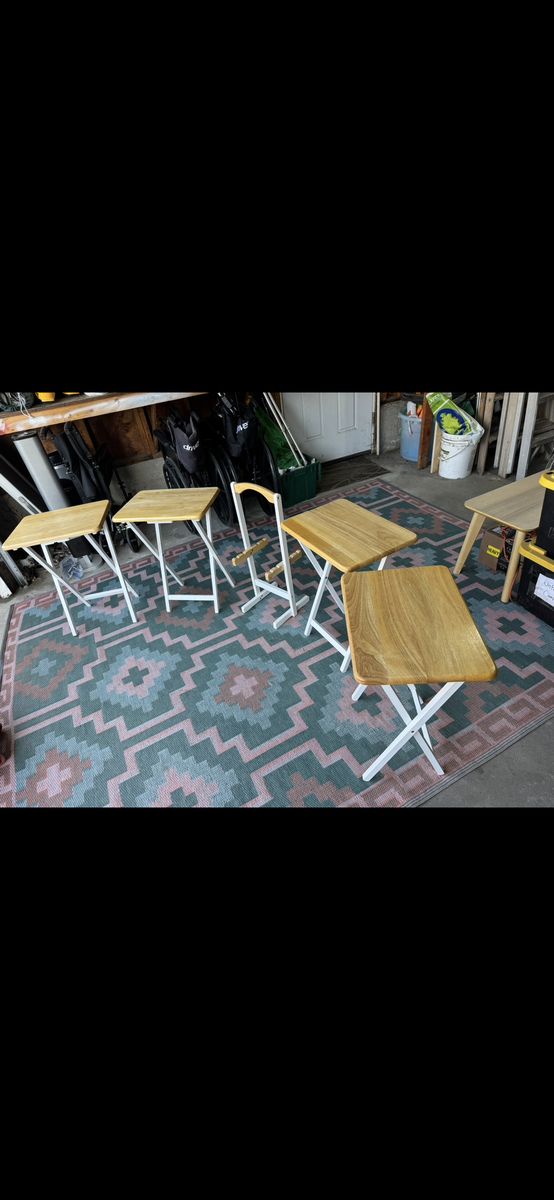 Venmo4x White and Tan Tray Tables with Stand.