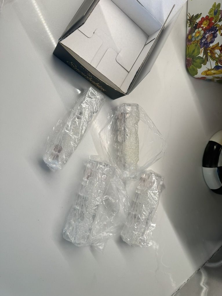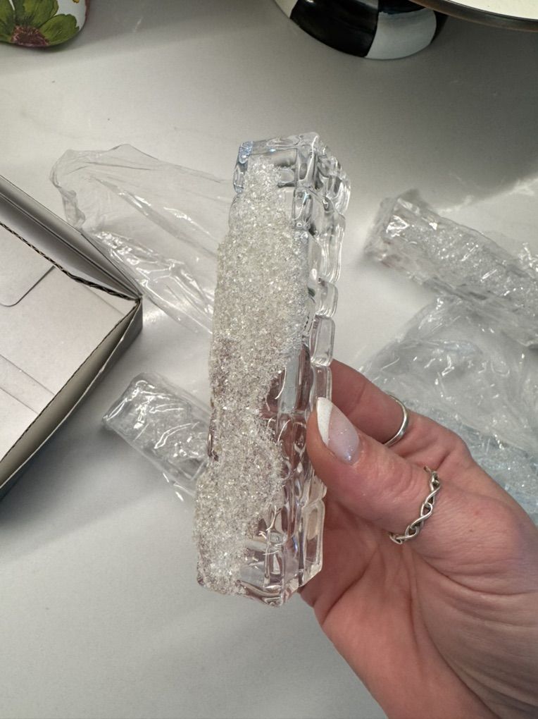 clear acrylic with textured “icy” finish great for holiday decorating or display setups new in box