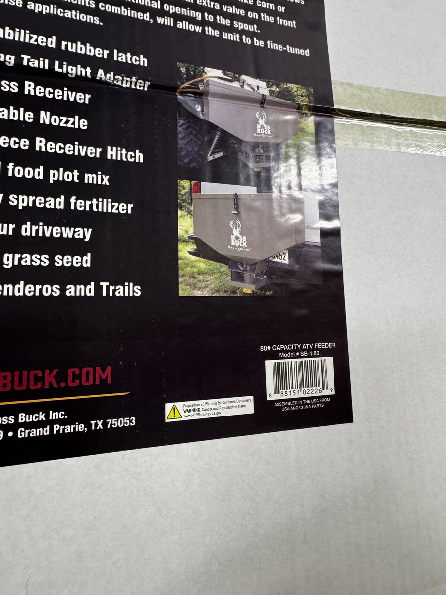VenmoNEW Boss Buck BB-1.80 80lb Capacity Non-Typical ATV Feed Spreader & Seeder