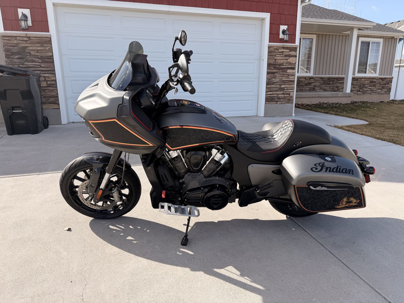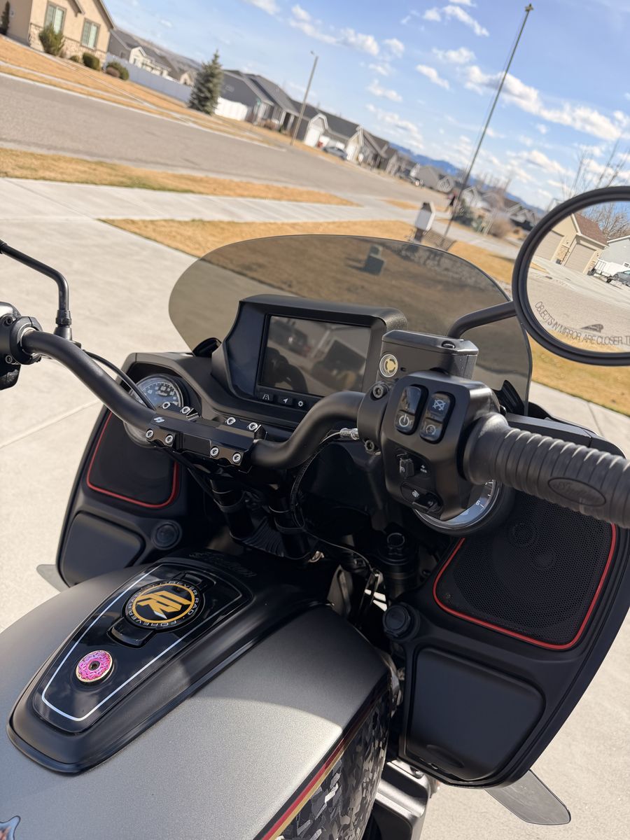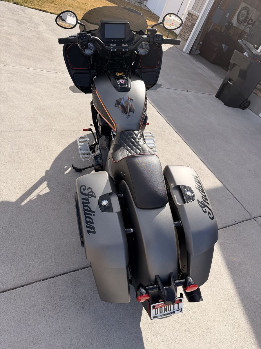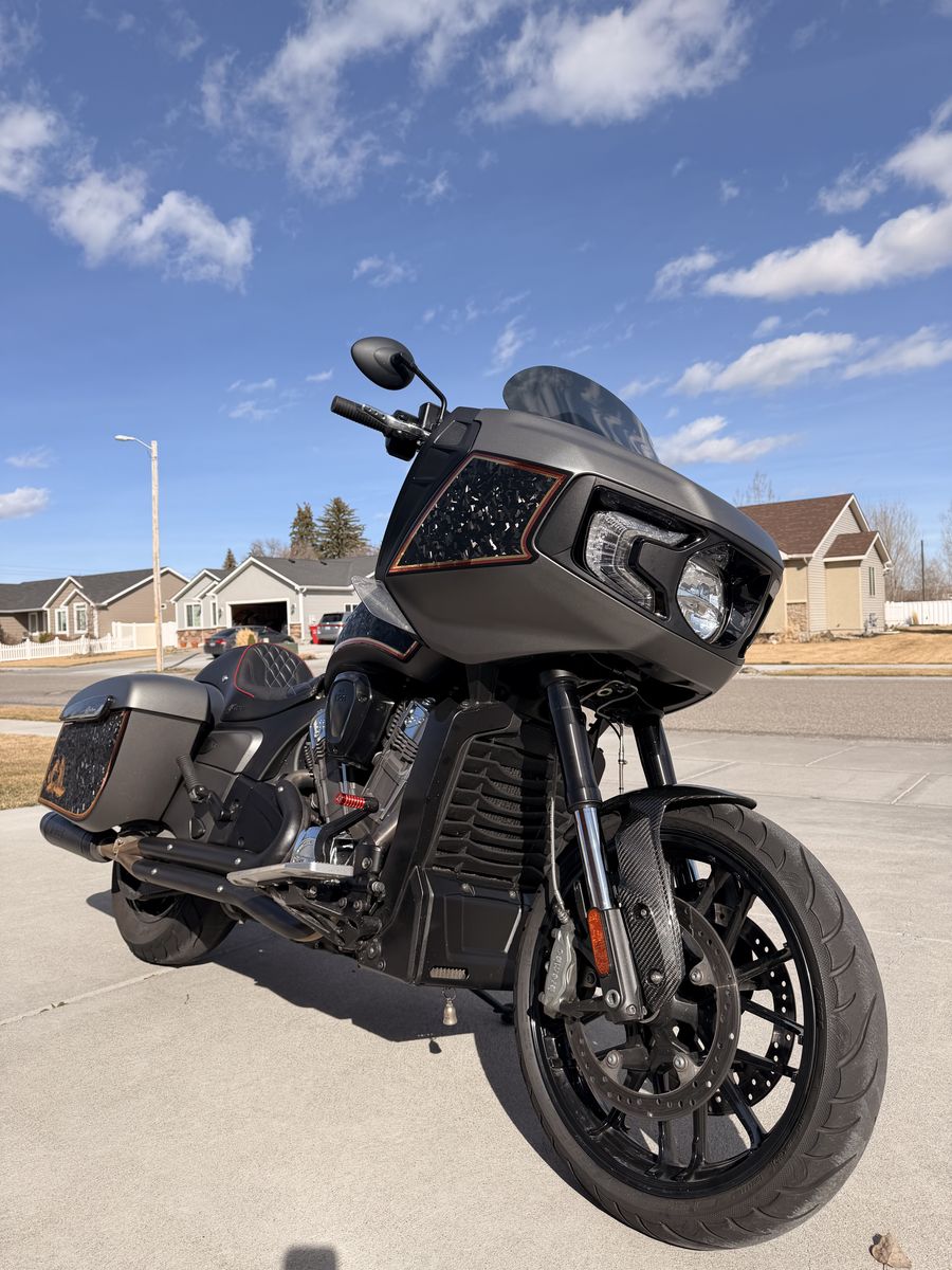 2021 Indian Challenger Titanium Smoke Clean title Miles: 24597 List of mods: -13177 miles - Hoonies Tune -Toce Full 2-1 V.1 Exhaust with Aluminum Subframe V.2 -S&S Air Filter 13177 miles -2” Bare Knuckle Lift front and rear -Barnstorm Dash Relocation Kit -Kraus pullback riser w/ Odi bar -Indian Heated Grips -Forever Rad FTR Front fender conversion -FTR Carbon Fender -Corbin Heated Wall Seat with red piping. -Freedom Windshield -Prior Performance Floorboards -OG Moto Shifter / Brake Pegs -Indian tall sissy bar with pad -dark horse fairing speakers -vinyl wrap by BeStickered (removable) -dark horse headlight bezel and signal trim