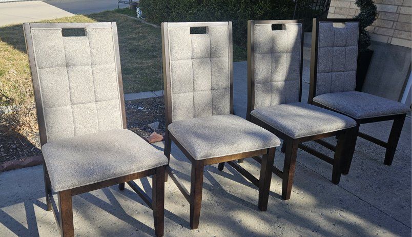 Venmoa set of 4 Grey dining chairs in fantastic condition, very soft and comfortable. $100 for all, FCFS pick up in Pleasant Grove