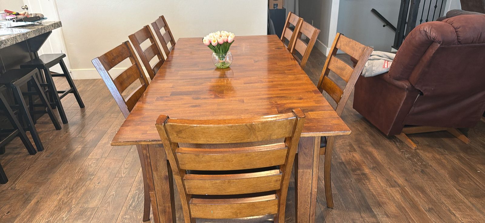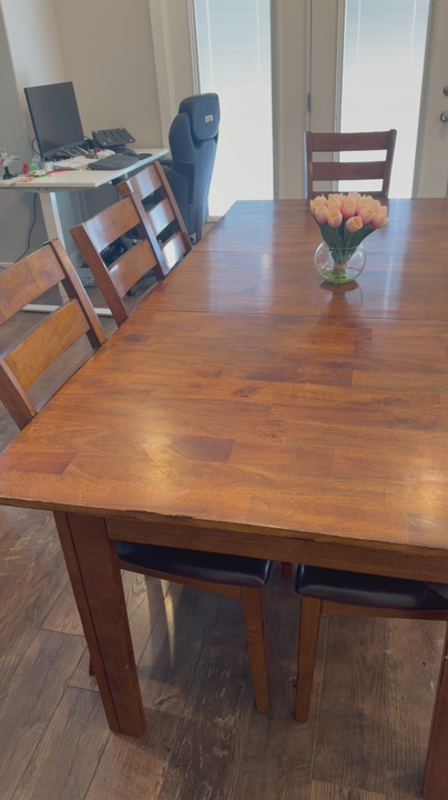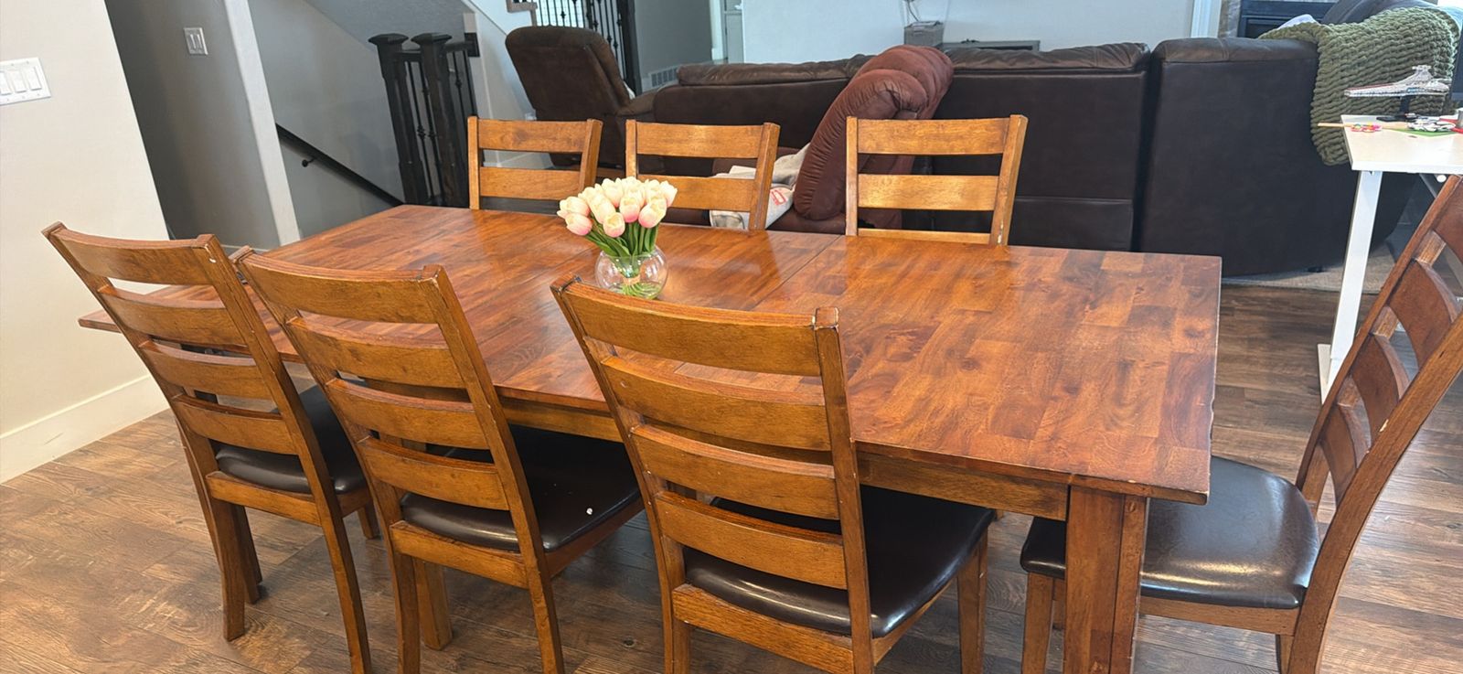 Table comes with 2 leaves and 10 chairs.