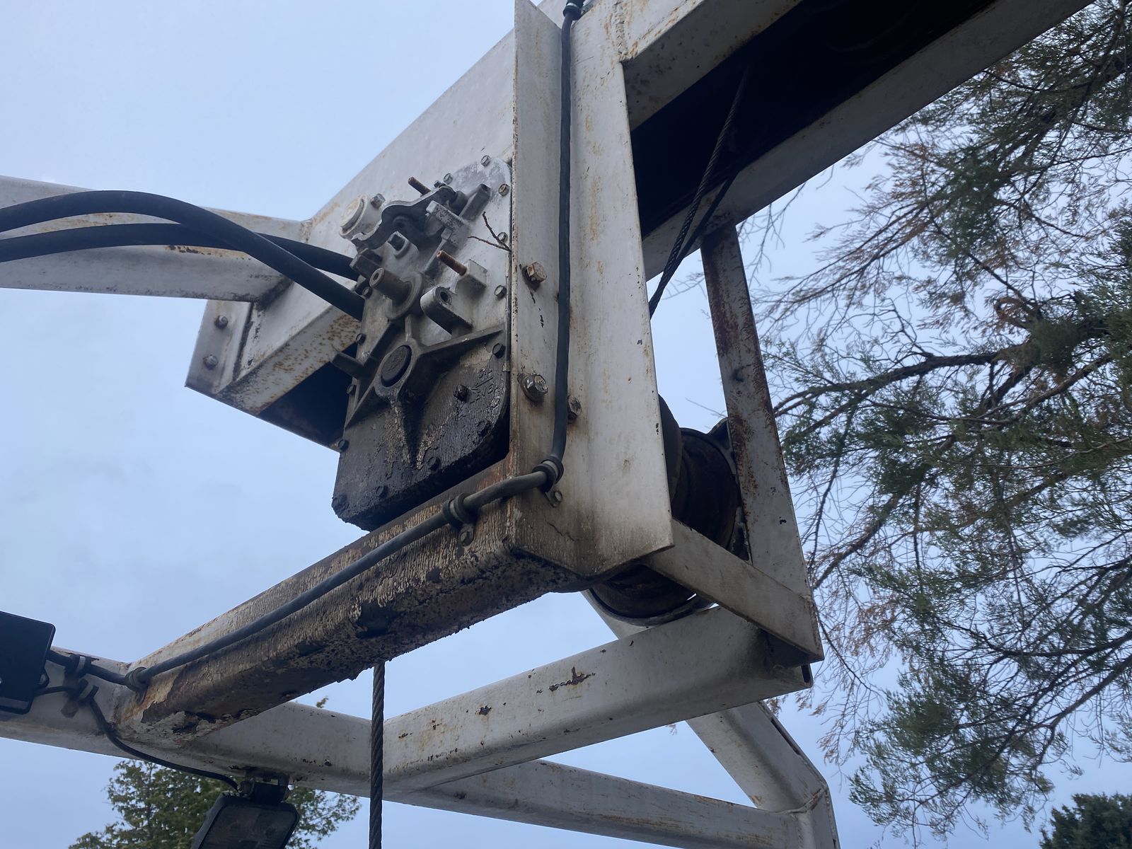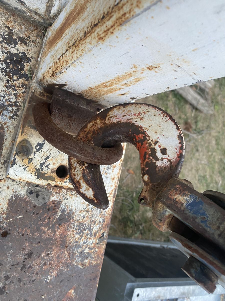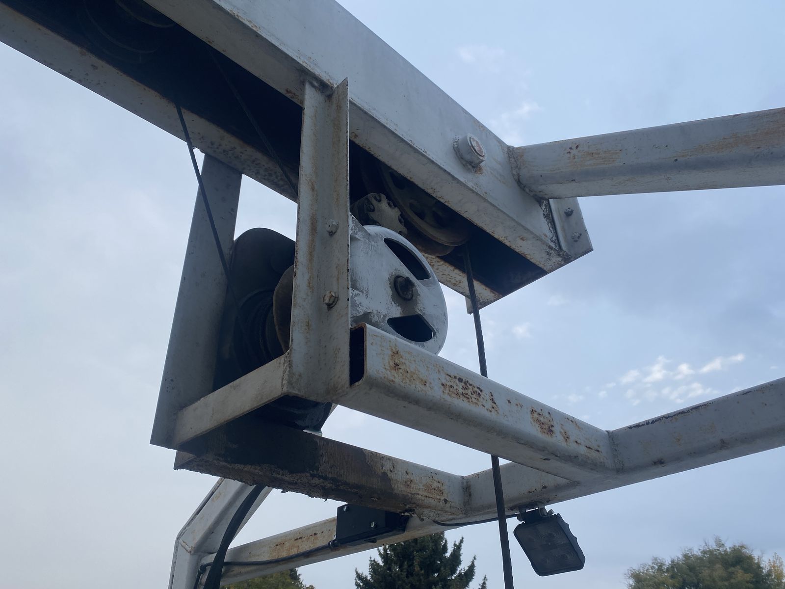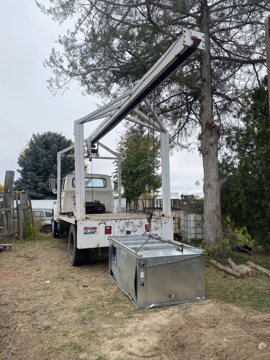 Two hydraulic winches control the lift and trolley. Pick up and set anywhere on the bed. I don’t know the lift capacity but this was used to pick up septic tanks.