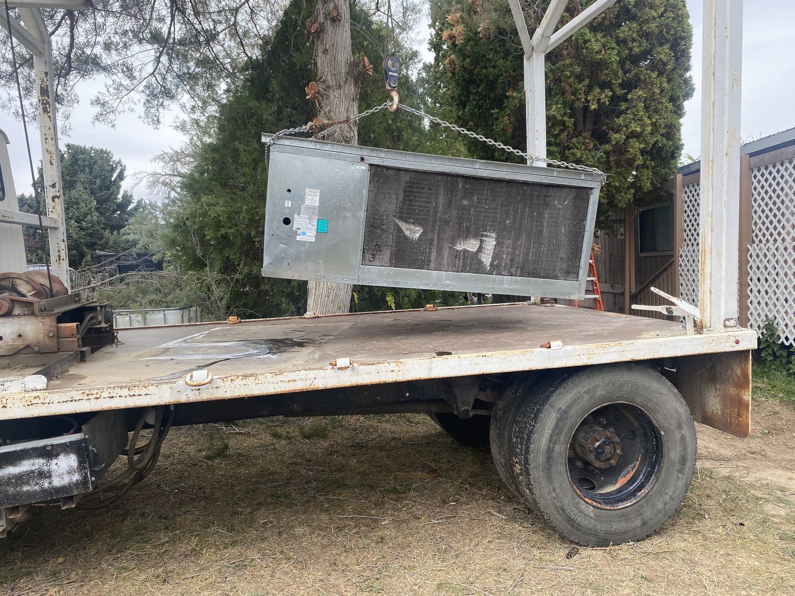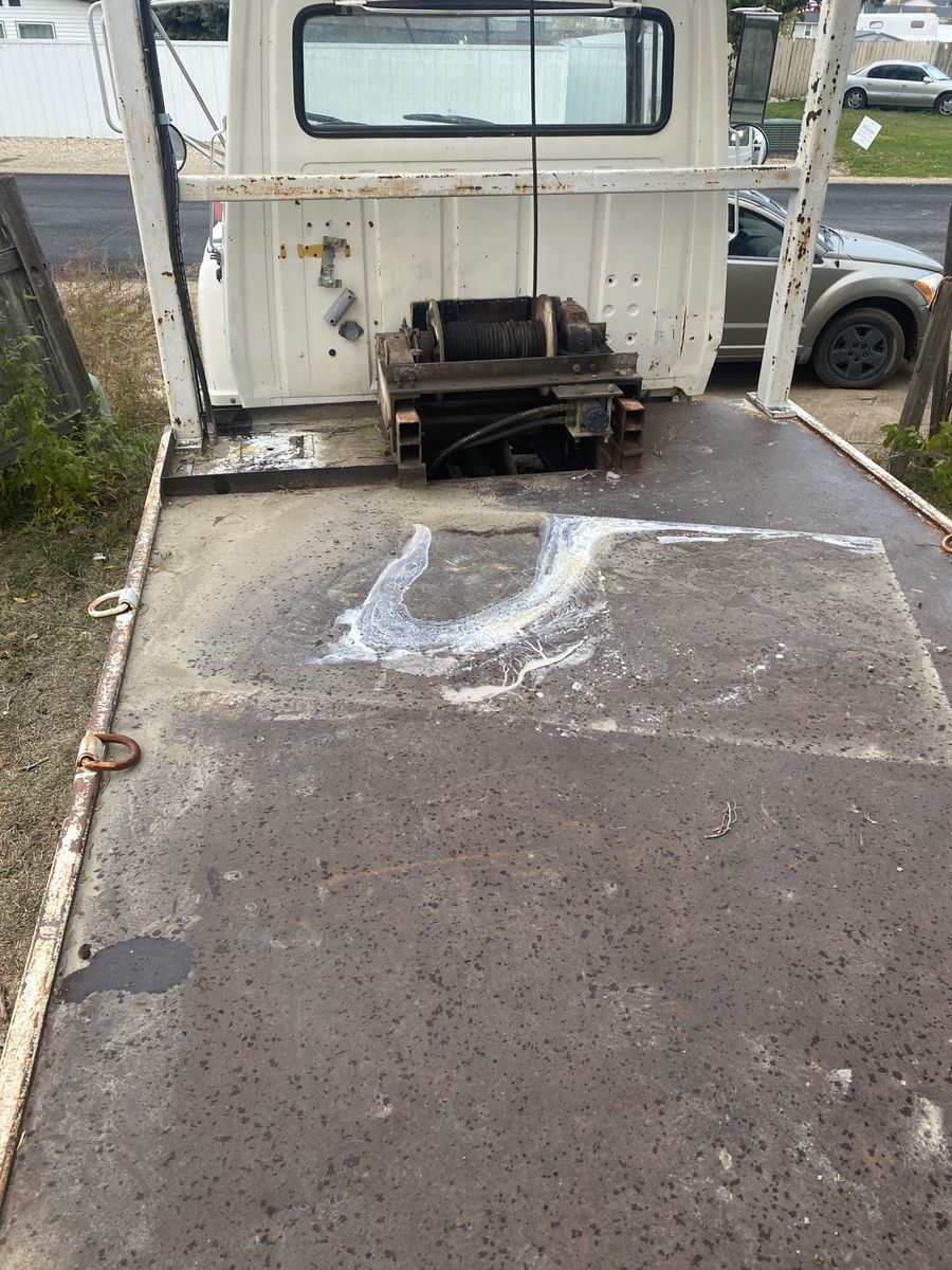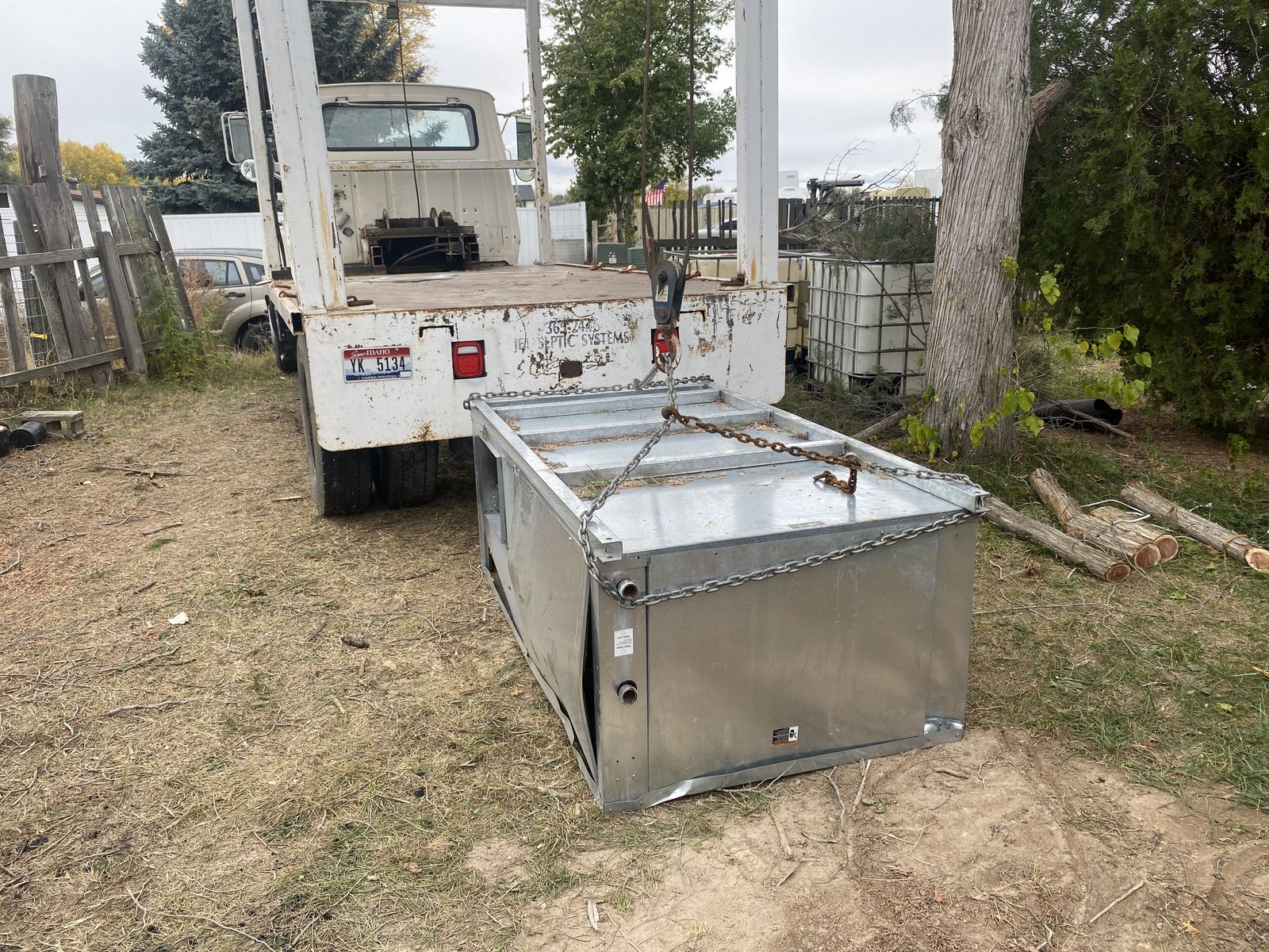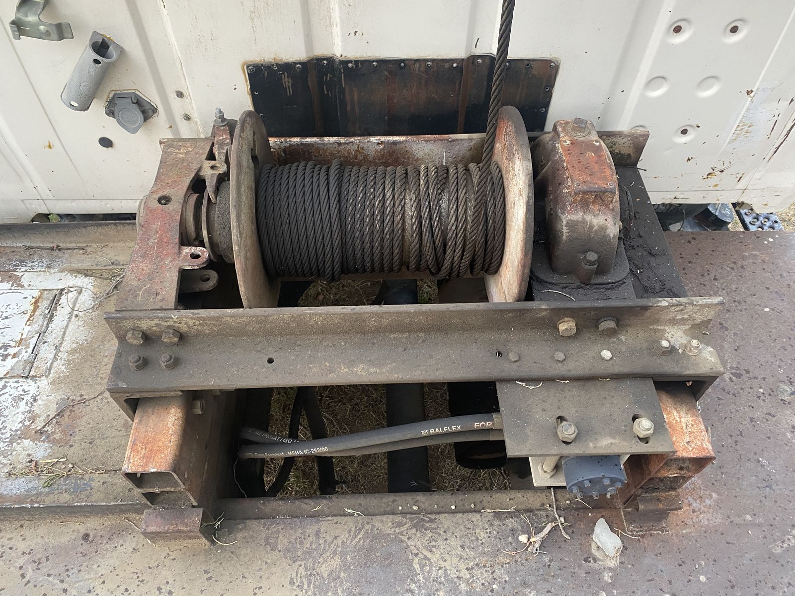 Two hydraulic winches control the lift and trolley. Pick up and set anywhere on the bed. I don’t know the lift capacity but this was used to pick up septic tanks.