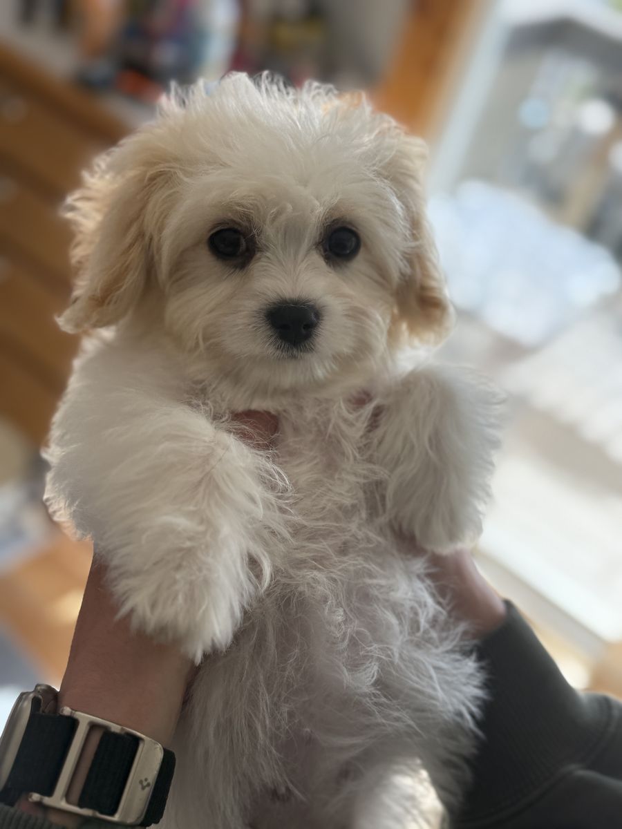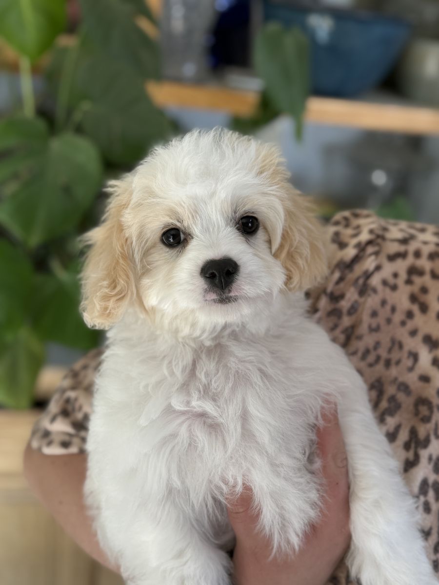 ApplePayWe have three beautiful Cavachons left out of our litter of five. If you’re wondering what a Cavachon is, they are a cross between a Bichon Frise and a King Charles Cavalier. They have hair, not fur and generally do not shed unless they are brushed. Their temperament is extremely calm. They train easily and do wonderful in many different living situations. They are crate trained, 90% potty trained and are doing excellent learning to walk on a leash. They are anticipated to be between 10 and 14 pounds full grown. These three are fully vaccinated and will have a health certificate from the veterinarian. If you’d like more information or to meet these three fun puppies, please feel free to reach out.