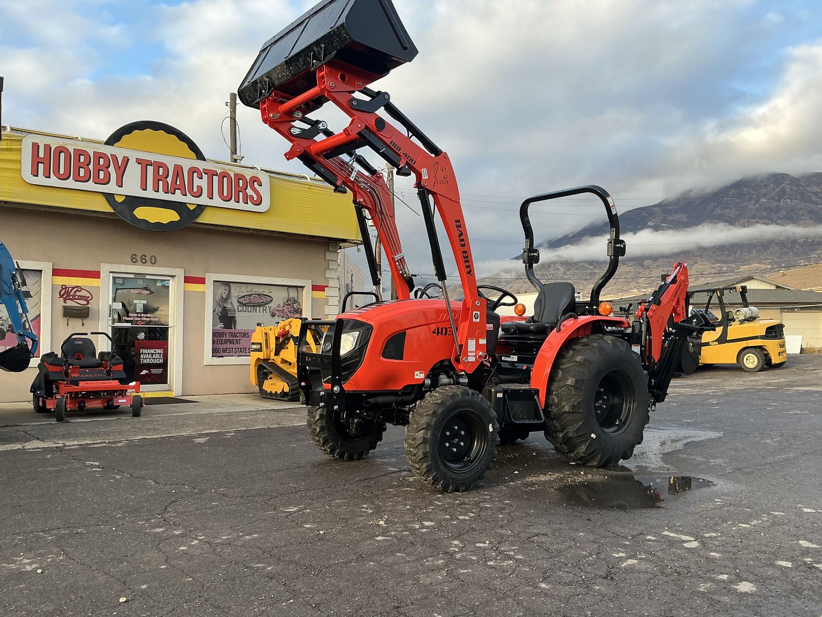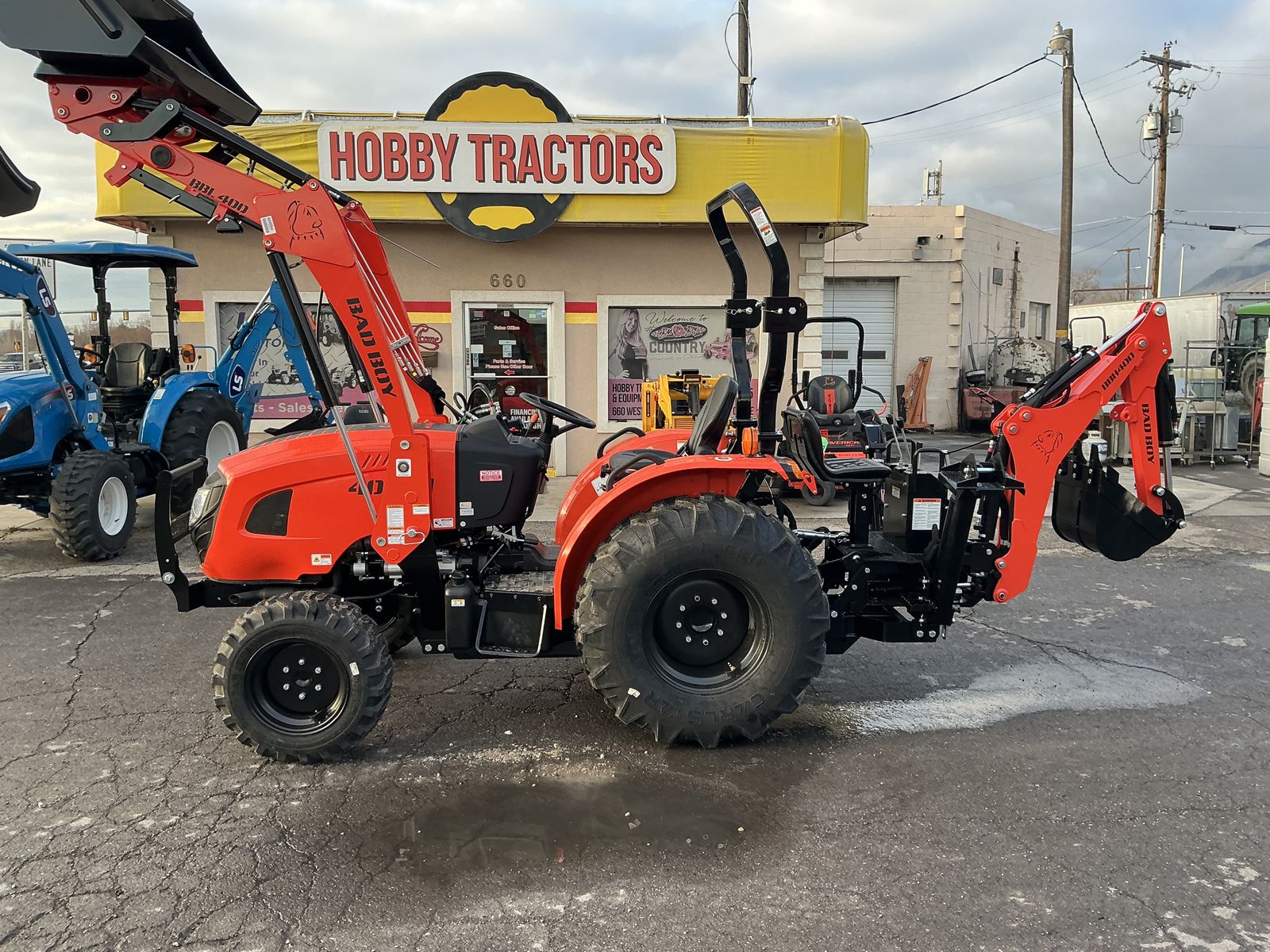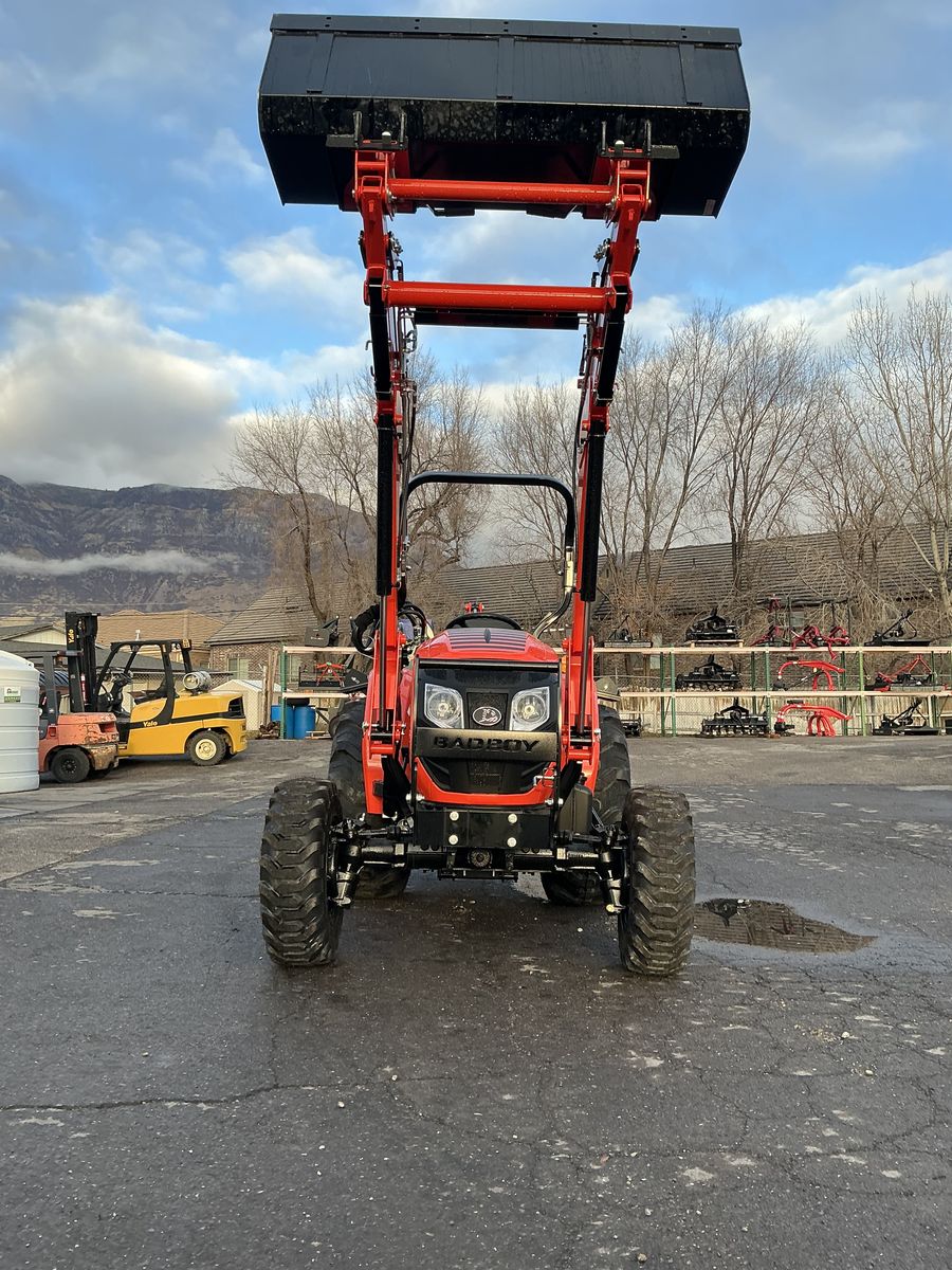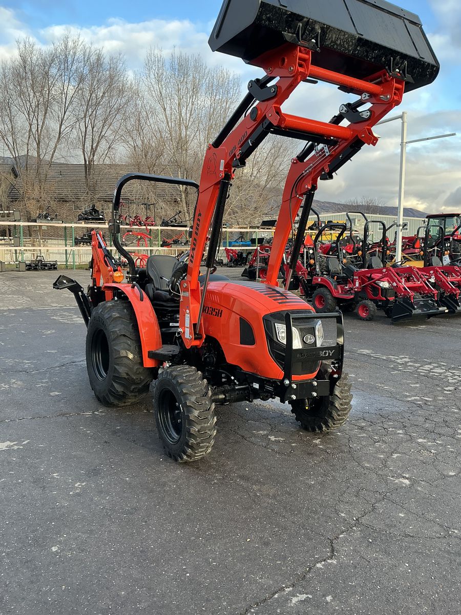 New Bad Boy 4035H Tractor, Loader and Backhoe Great for Small Farming, Lifting Bales, Gardening, Landscaping and MUCH MORE! Dare to Compare to John Deere, Kubota, Massey Ferguson, New Holland! Cash Price $35,995 WITH ONE FREE IMPLEMENT Financing Price $36,995 WITH ONE FREE IMPLEMENT (Does Not Include Taxes, Fees or Trades) 35 Horsepower Diesel Engine 4 Wheel Drive Hydrostatic Transmission WITH AUTO REV Push Button PTO Category One 3 Point Hitch Skid Steer Style Loader 2,200 Pounds Lifting Capacity AT FULL HEIGHT 6 Year Warranty