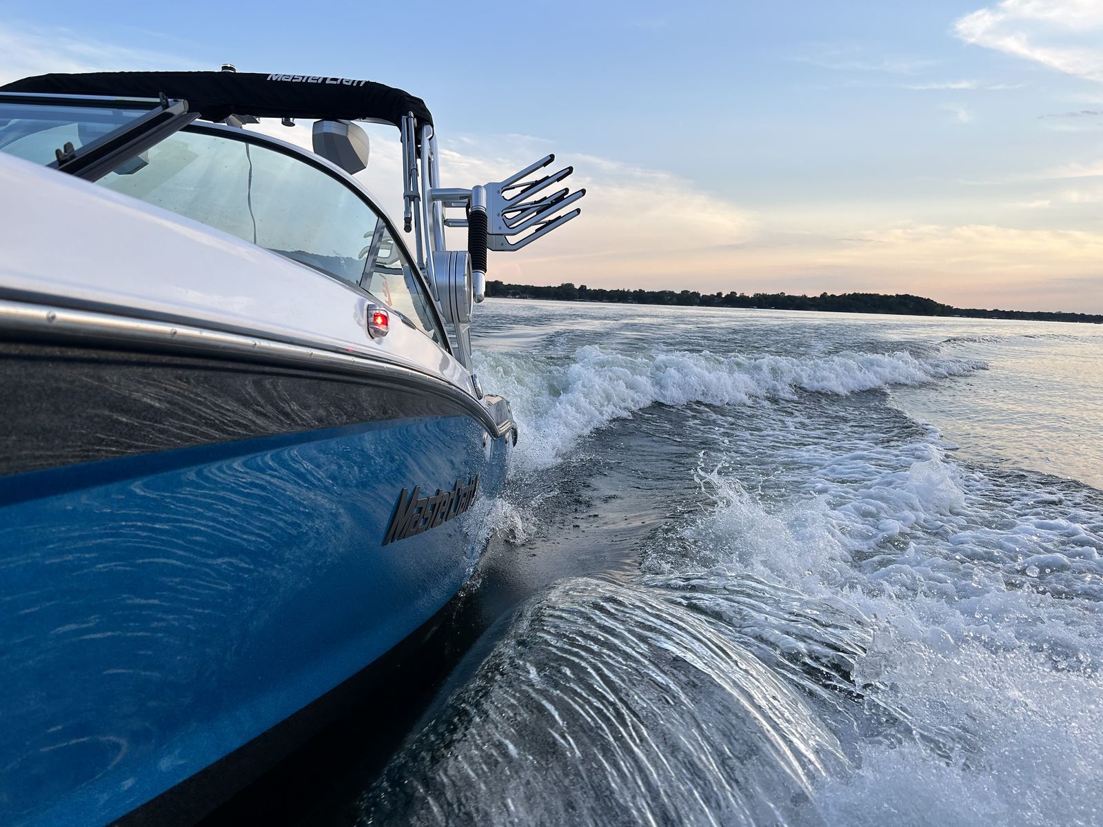 Powered by MasterCraft’s 430‑horsepower 6.2L Ilmor engine, this X24 delivers the perfect balance of muscle and refinement, pushing a massive 4300 lb. ballast system and the legendary Gen2 Surf System with ease. The touchscreen command center puts full control of surf presets, lighting, and boat systems right at your fingertips, while the premium audio setup fills the lake with crisp, powerful sound. A fully appointed interior with plush seating, deep storage, and a sleek tower with racks and bimini creates a luxury experience for everyone onboard, and the transom seating and swim platform make gearing up—or just hanging out between sets—effortless and comfortable.