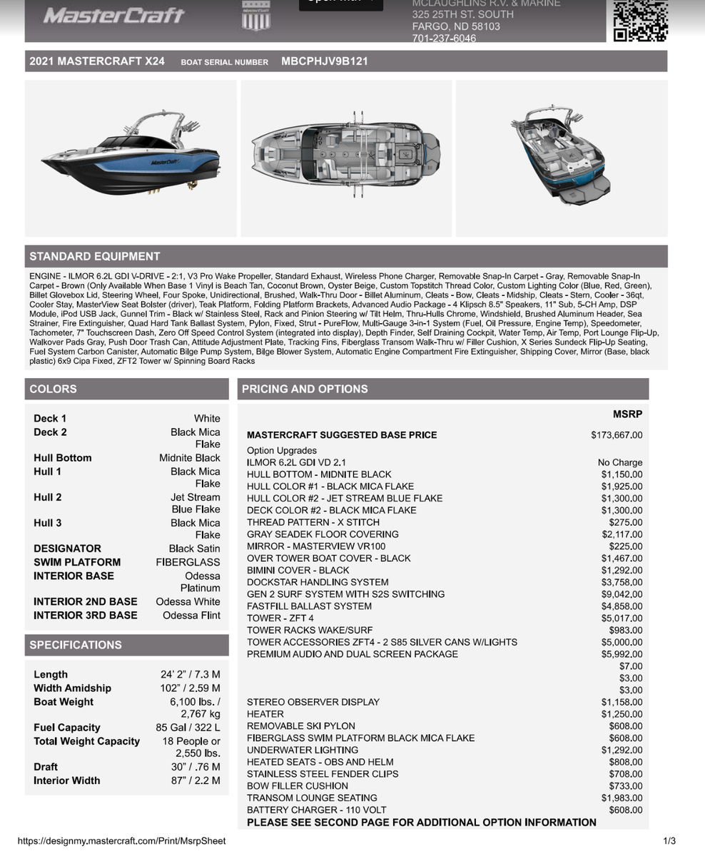 If you’re looking for a boat that turns heads at the dock and throws the kind of surf wave people talk about all summer, this 2021MasterCraft X24 is it!
