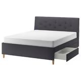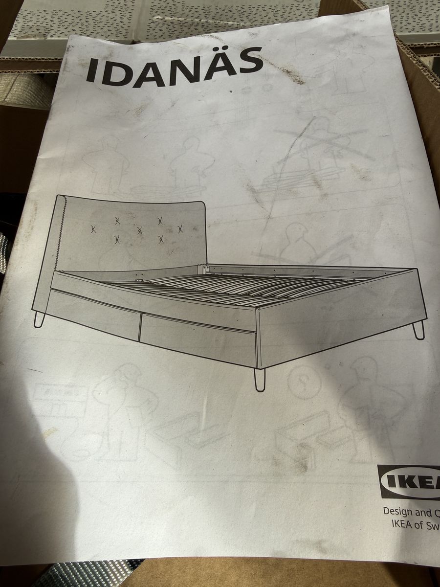 VenmoIKEA IDANÄS upholstered bed frame in dark gray. Features a tall tufted headboard with button detail and nailhead trim along the top edge. Good used condition. Mostly assembled. Assembly manual included. Can deliver.