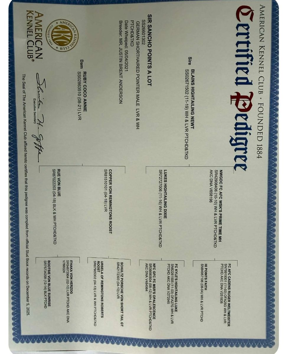 Looking for your next hunting partner/best friend? We have a phenomenal litter of AKC registerable pups ready to be all you want and more! This is a promising litter, with both mom and dad having championship bloodlines. Both point and retrieve like you wouldnt believe and love their jobs. These pups will require an active family, whether it be in the field chasing birds, or hiking/trail running, but, with the proper activity in place, have the genetics to realize when its wind down time and will be the best couch potato/snuggle buddy youll ever have.