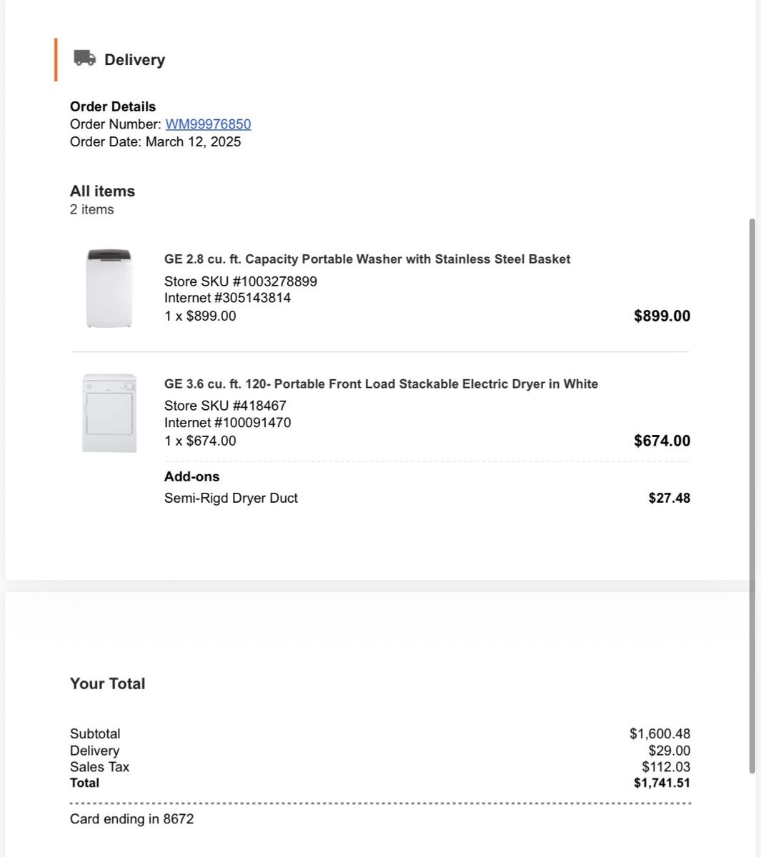 CashAppPurchased new 12 months ago in March 2025 (see photo of the receipt). For an apartment that didn’t have traditional washer/dryer hookups. The washing machine can be ran from a sink with the included adapter, or from a regular hot/cold water connection if that is not needed. Works flawlessly, but I am moving to a new apartment that already has a washer & dryer, so they are no longer needed. Price is firm. A great price for the condition and age. What you see in the photos is exactly what you’ll receive. They are also stackable with separate hardware that can be purchased on the General Electric website (not included).