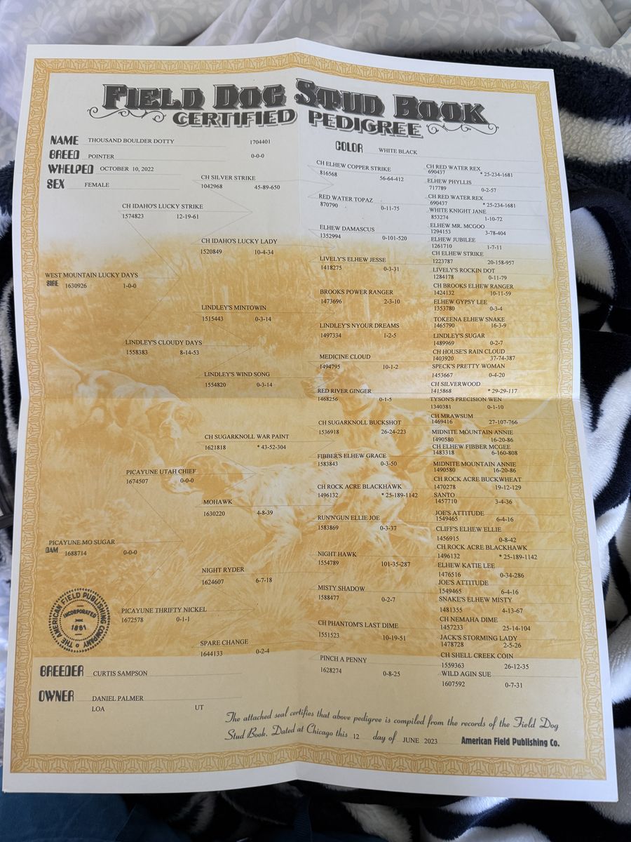 VenmoEnglish Pointer puppies out of Wild Sky Gundogs in Loa. These will be awesome hunting companions and family dogs. These pups had been bred to hunt with lines going back to 6x champion Gaurdrail as well as Hall of Famer Honky Tonk Attitude. Both parents are amazing hunters with great natural ability with pointing, backing, water retrieves, and obedience training. Pups are one day old. Accepting deposits. I have liver, black and mostly white pups. They will be ready to hunt pheasants this fall.
