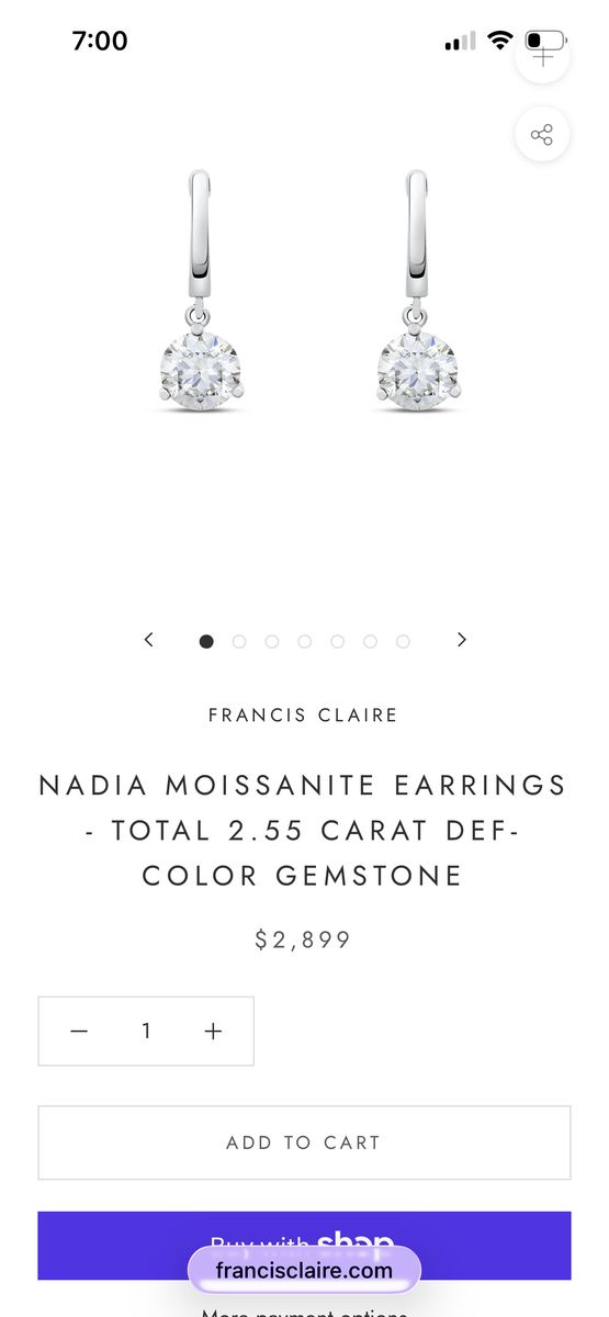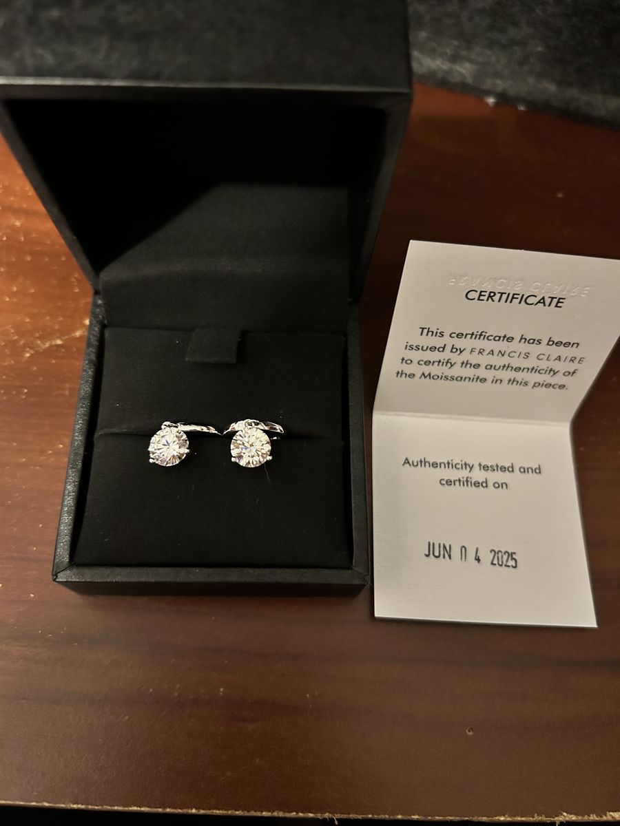 ApplePayMoissanite diamond earrings with sterling silver. Each 2.55 carats worth $2,899.00 brand new and never worn.