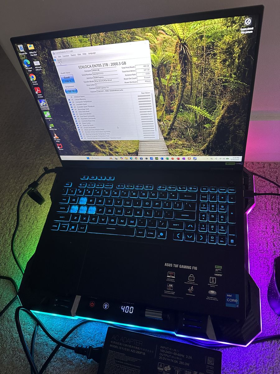 Upgraded new 2 TB Ediloca EN705 model gen 4 NVMe SSD that is massive to store games or edited videos) in this mid-February that boots up the laptop in 15 seconds completely and handles 45+ internet browsing tabs to open simultaneously,