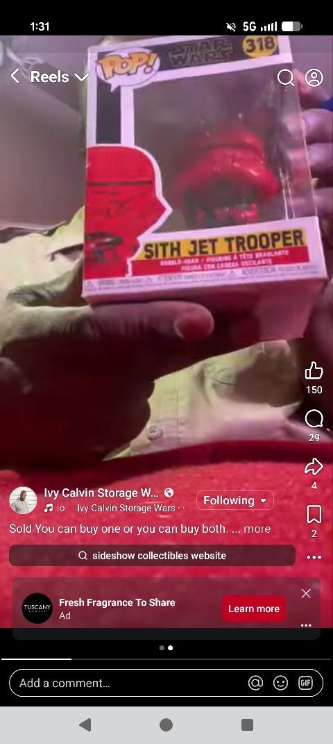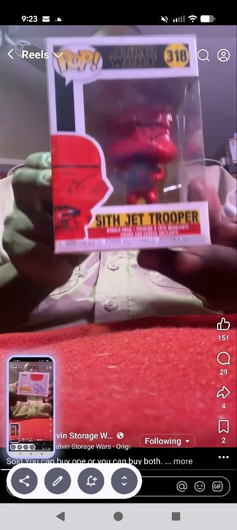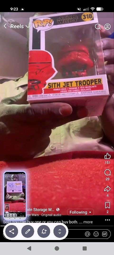 PayPalThe Funko Pop 318 Sith Jet Trooper Bobblehead box signed by Ivy Calvin from Storage Wars is a highly sought-after collectible figure featuring a unique design inspired by the Star Wars franchise. This exclusive vinyl figure is a must-have for any Star Wars fan, especially those who appreciate the Sith Jet Trooper from Star Wars: Episode IX – The Rise of Skywalker. Additionally, the signature by Ivy Calvin adds a special touch to the overall value and appeal of the collectible, making it a valuable addition to any collection. 50 dollars or best offer. Will ship world wide.