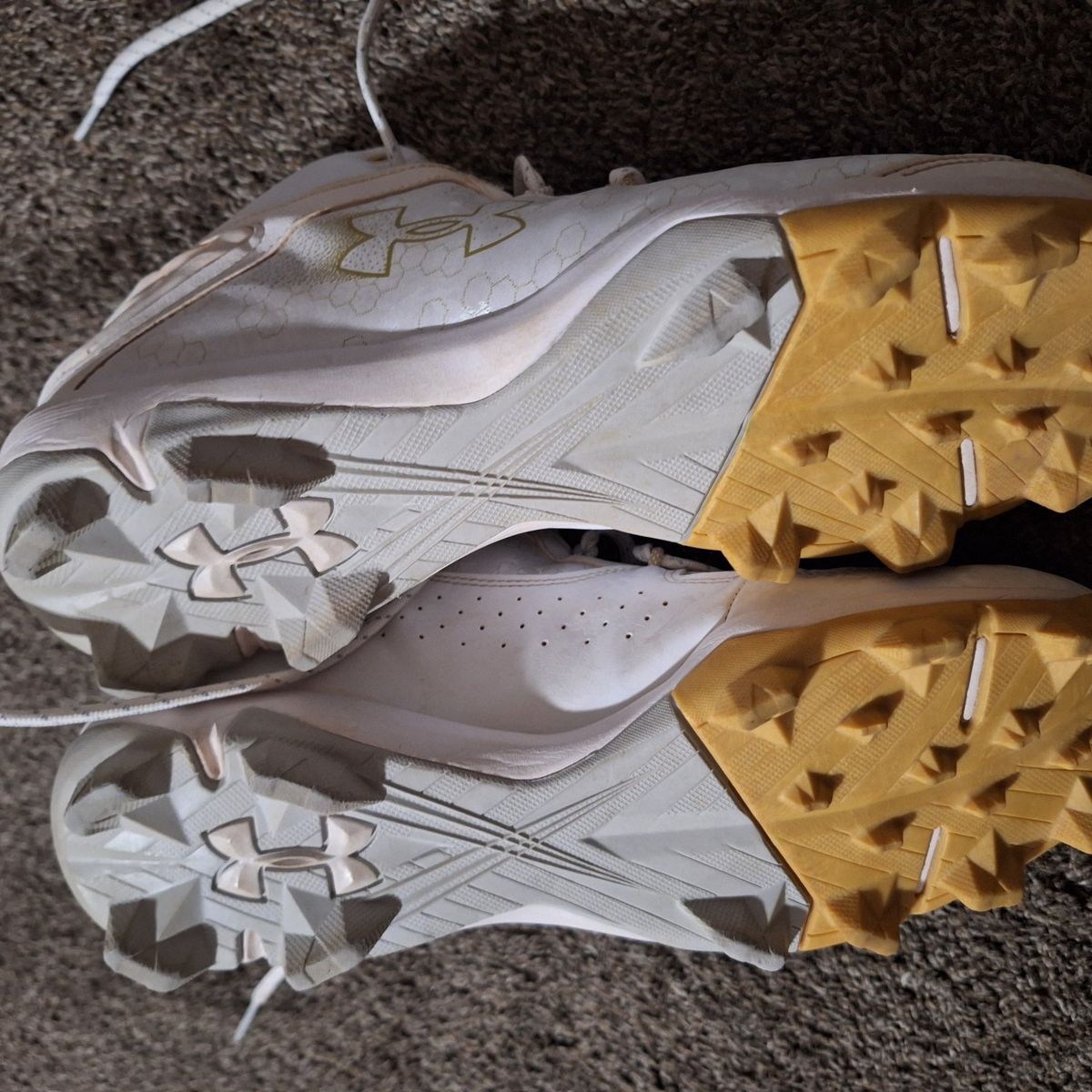 Under Armour size 9 baseball cleats. Some staining from the baseball field dirt but otherwise in great condition.
