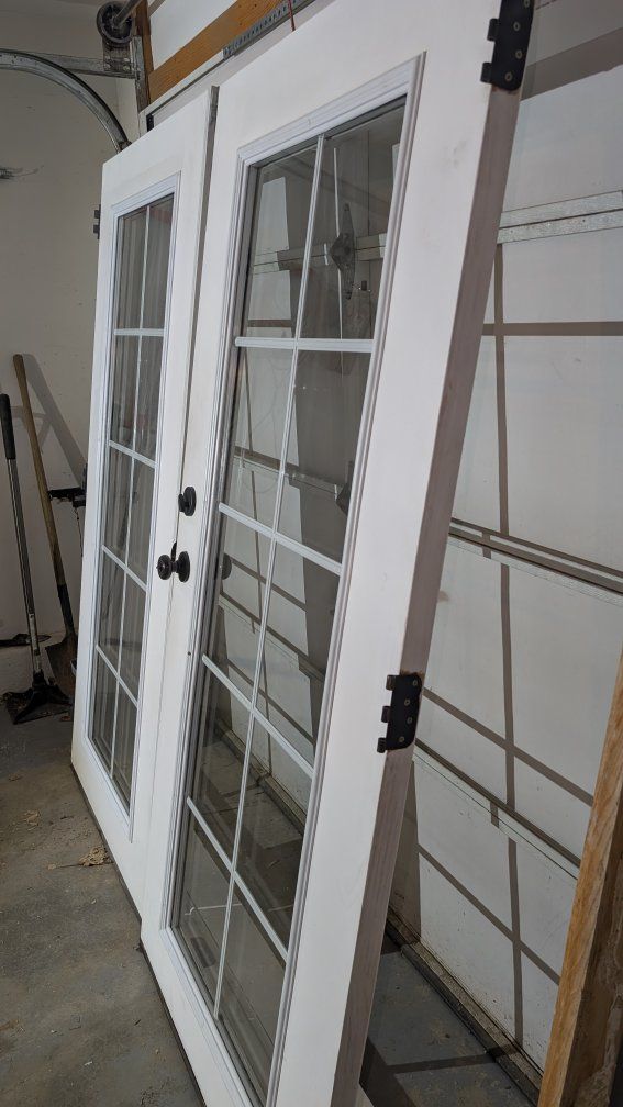 Unit size of frame: 73 5/8" x 79 1/2". Jam depth 6 9/16". Viewing from the outside, left door is the active panel. Needs fresh paint. Chipping on the top (pictured). No major defects. Pick up in North Ogden.