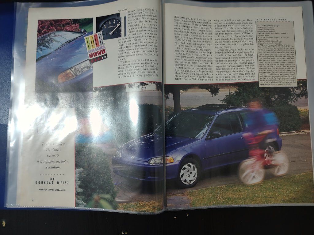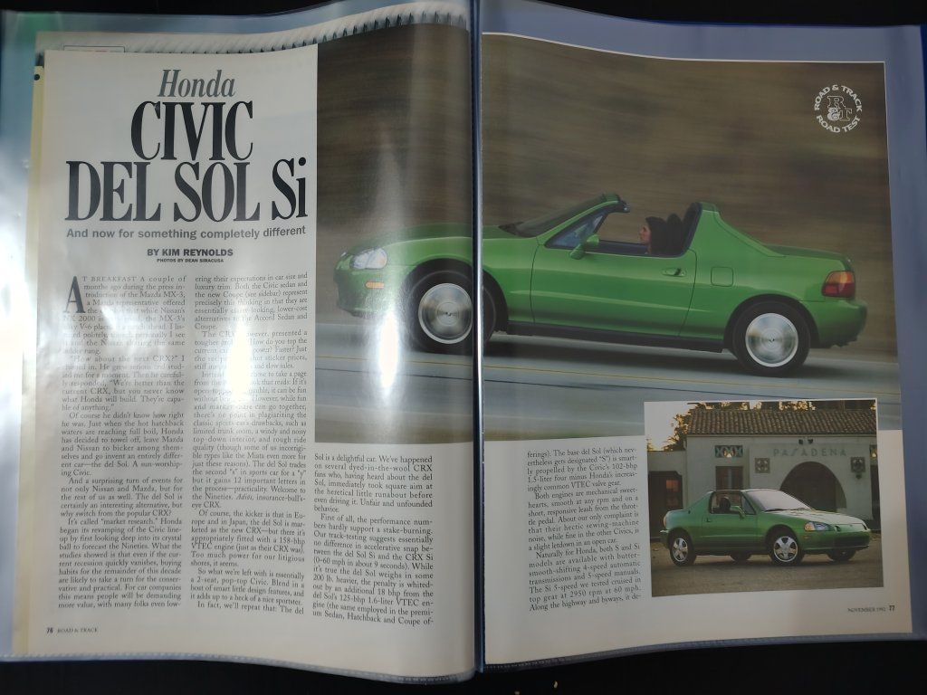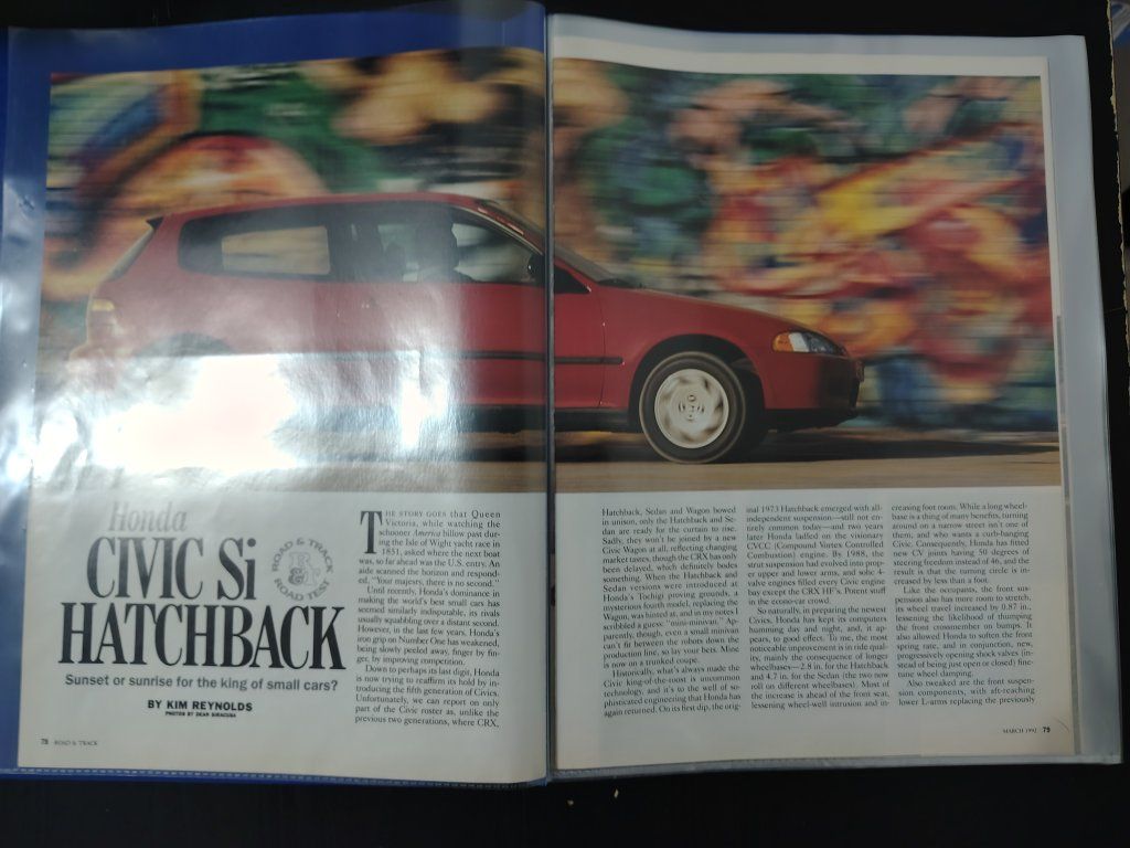 Honda Civic Si Magazine Article Road & Track Magazine 3 pages Honda Civic Si Magazine Article Automobile Magazine 4 pages Honda Del Sol Si Magazine Article Road & Track Magazine 3 pages