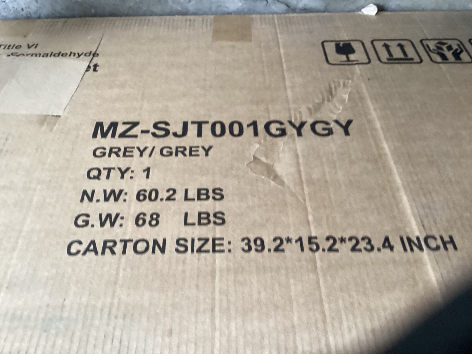 Brand new gray patio furniture set in the box. Model on box: MZ-SJT001GYGY Color: Gray / Gray