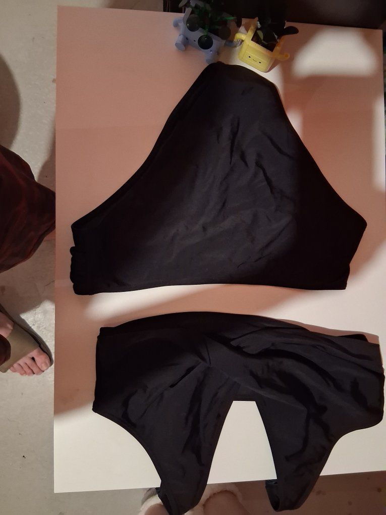 VenmoBlack two piece swim sute that has adjustable straps, V-neck solid high waist, size XL