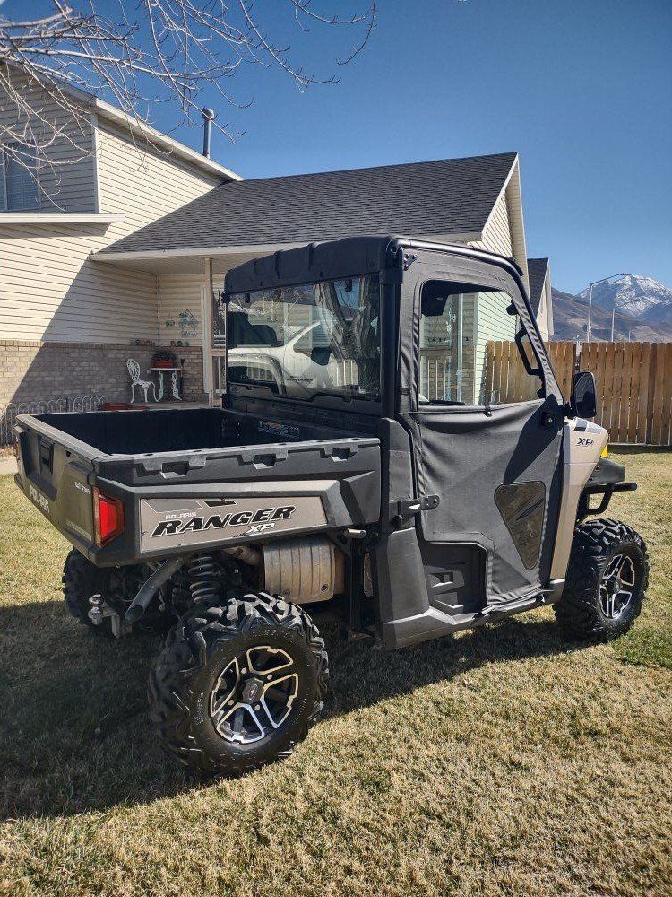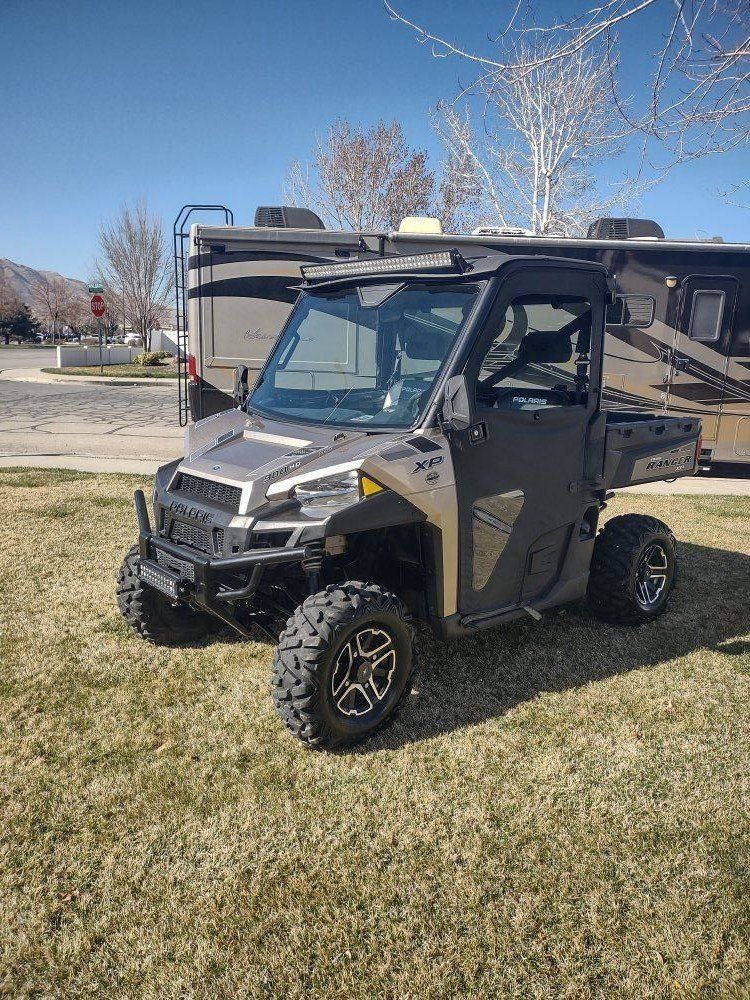 Polaris ranger exp 4x4 fully enclosed glass front and rear two front light bars New tiers fresh oil change tune up New belt come with extra belt power steering tilt wheel storage under seats trailer able cover 9,500 runs excellent any questions text or call 435-660-6086 .