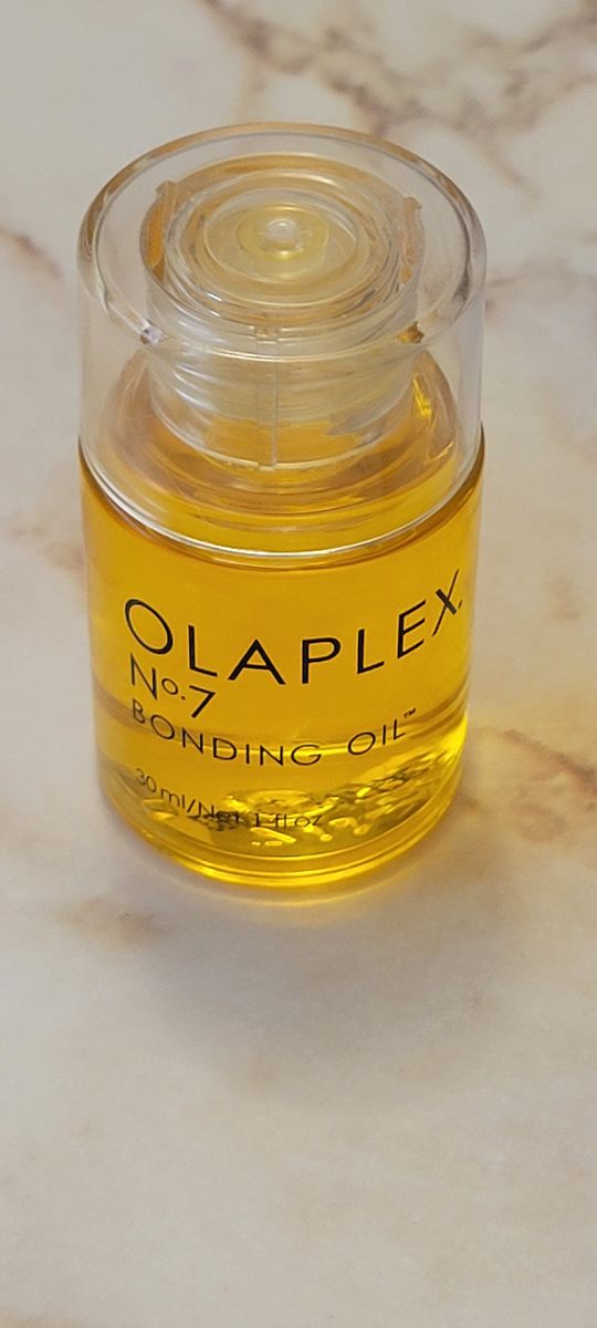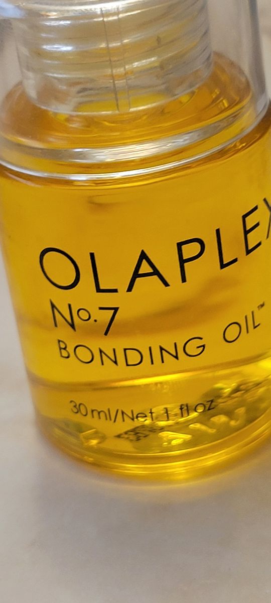 Olaplex No. 7 Bonding Oil. 1 fl oz. Bonding hair oil is a highly-concentrated, weightless reparative styling oil that dramatically increases shine, softness, and maintains color vibrancy. Olaplex No. 7 bonding oil minimizes flyaways and frizz, while providing heat protection of up to 450 degrees. Benefits: Instantly boosts shine, color vibrancy, and softness, 450 degree heat protection. 125% more shine, 72 Hr frizz control and humidity resistance, 77% reduction in breakage. (Cash Only)