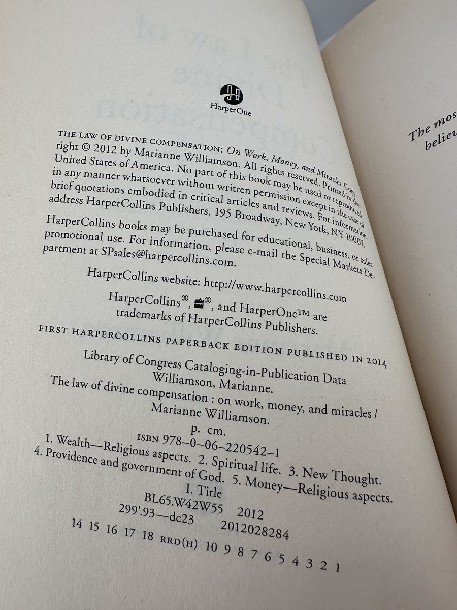 ApplePayThe Law of Divine Compensation by Marianne Williamson explores the relationship between spirituality, work, and financial abundance. A New York Times bestselling author, Williamson offers guidance on aligning purpose with prosperity and overcoming fear-based thinking.