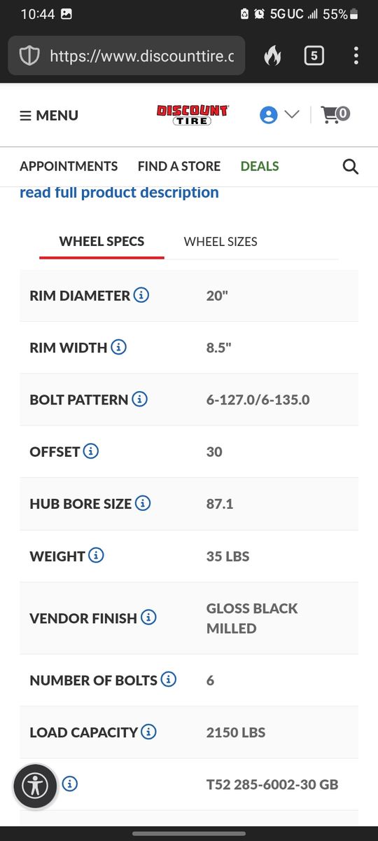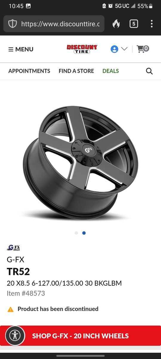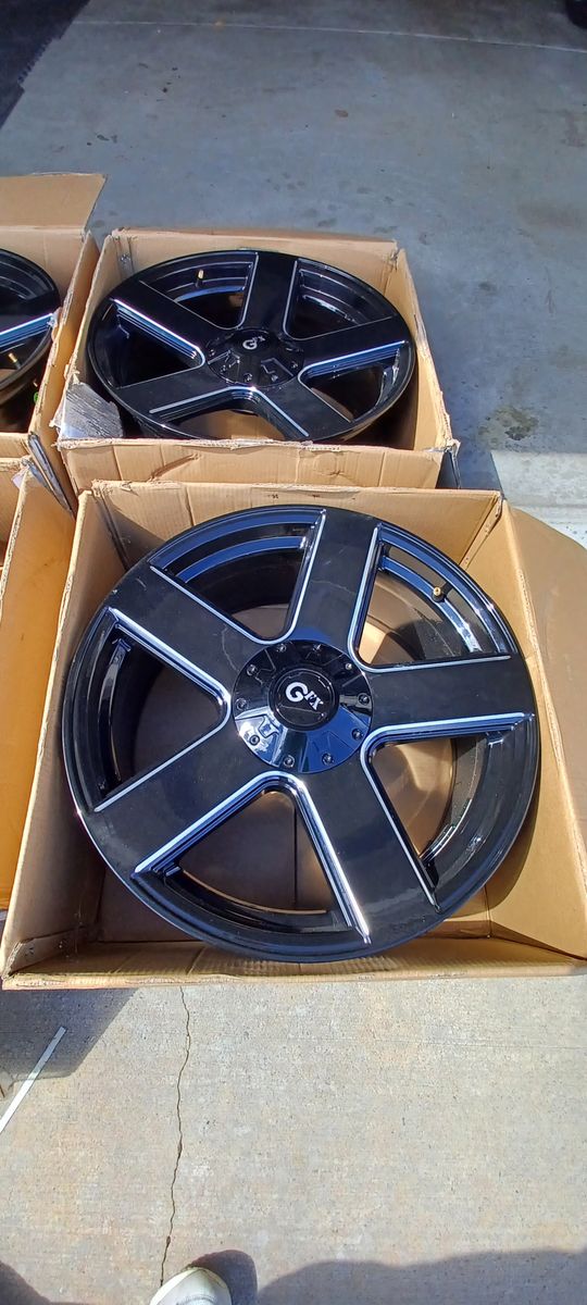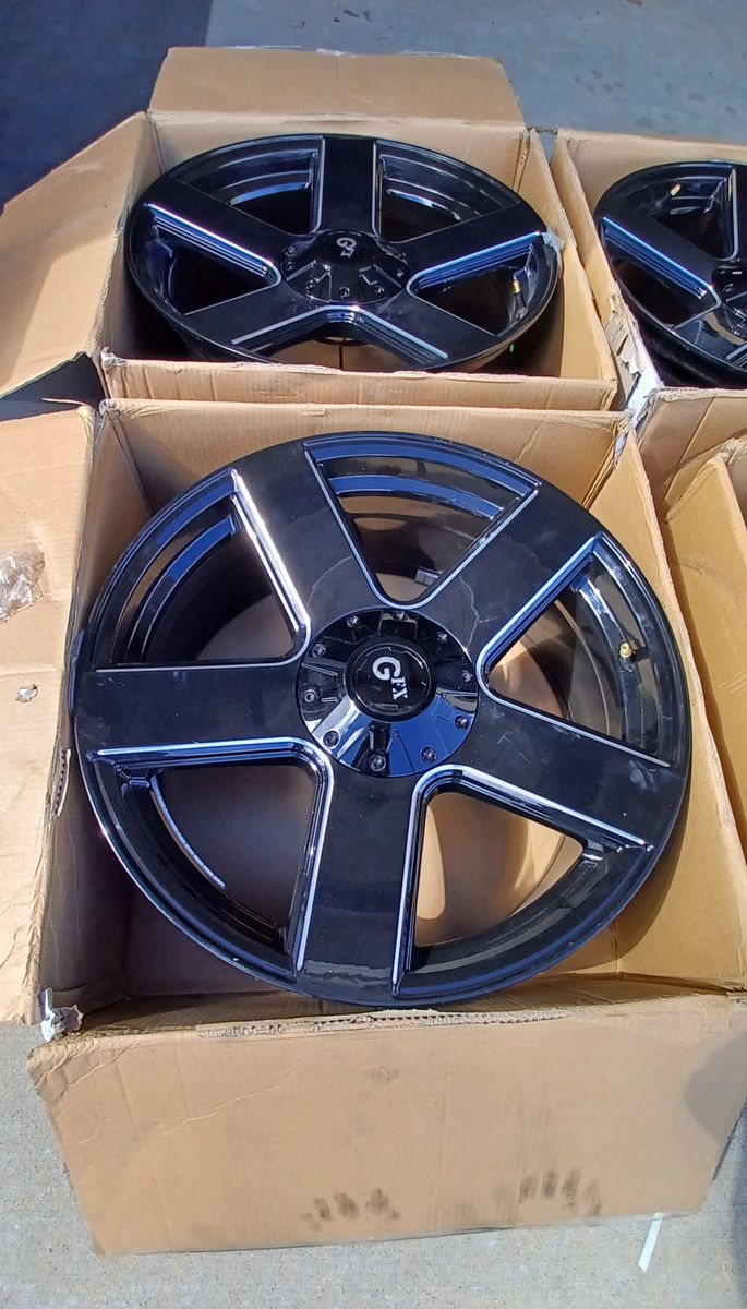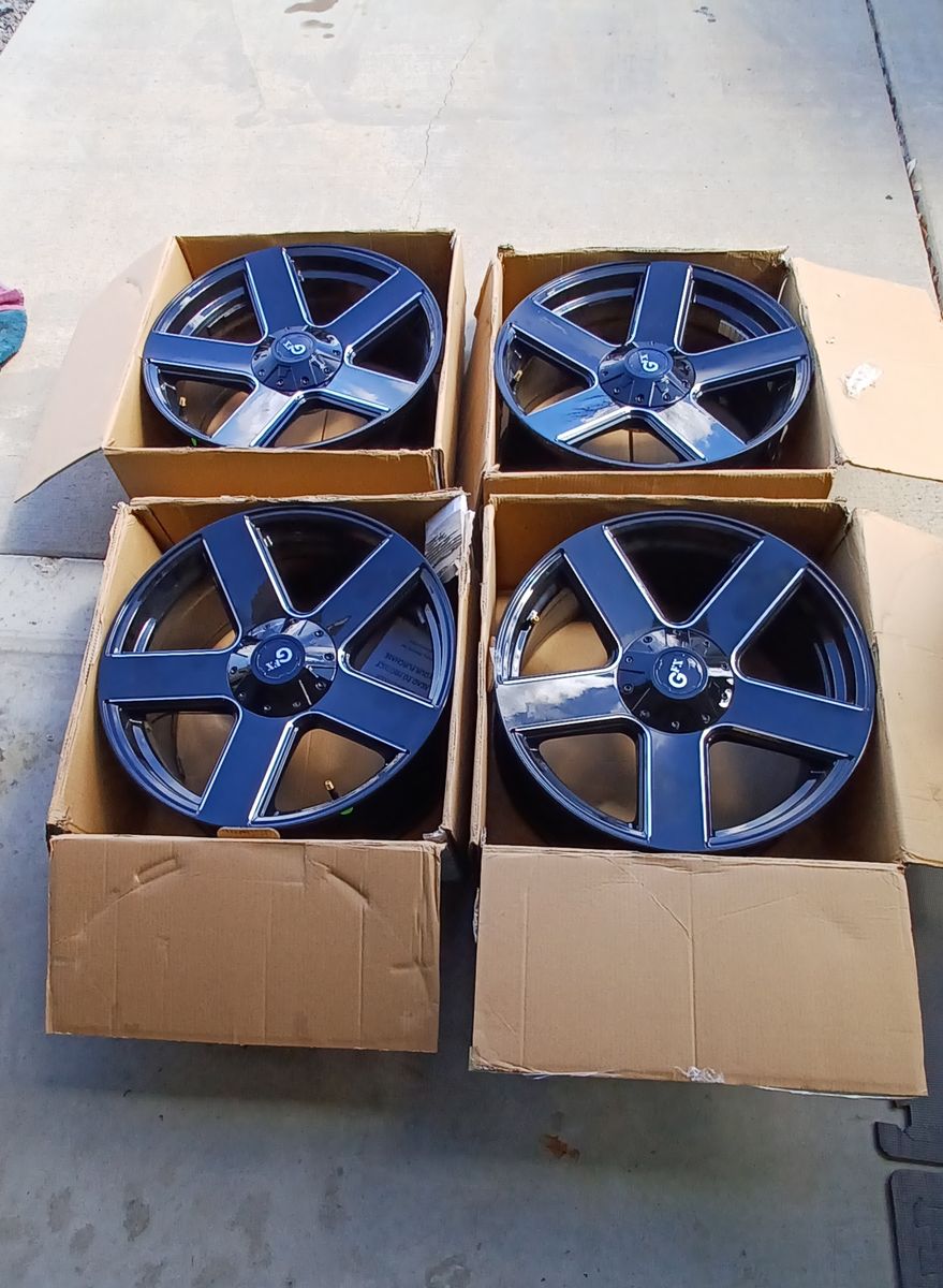 A clean set of 20 x 8.5" wheels with caps. No curbrash and super clean. They fit F-150, Ford explorer,, GMC envoy, Chevy Trailblazers and a few others.