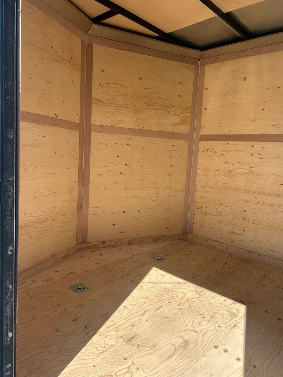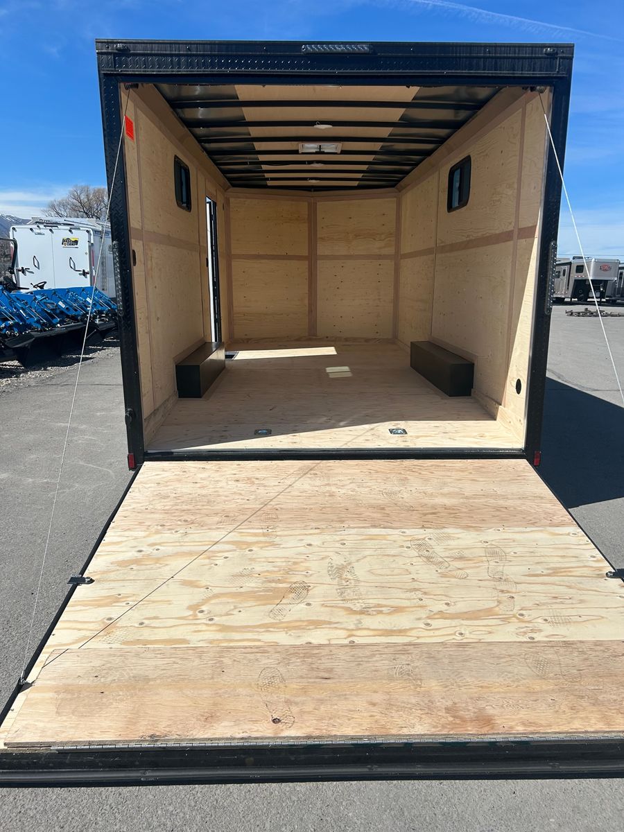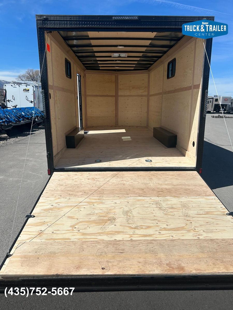 Rear Ramp Door Black Out Trim Windows 7' Tall Side Door w/ Flush Lock and Bar Lock 3/8 Wall Lining 3/4 Floor 4 Interior Lights