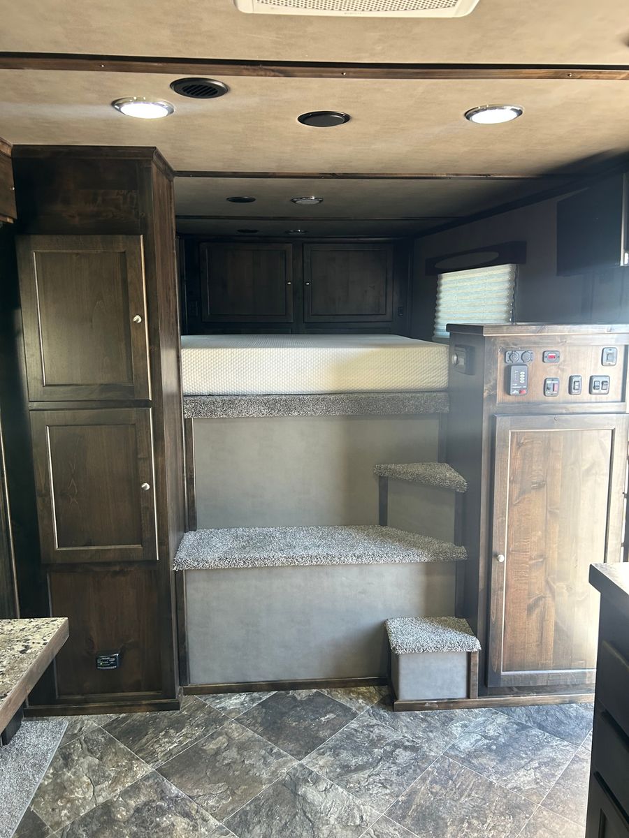 You asked and we delivered! Finally a well built toy hauler that has the strength and quality to last for years of memorable use! Galvanized Structural Tube Frame Galvanized structural tube frame, offers you peace of mind knowing your trailers structure will not corrode from the inside out and also give you a 18-20% stronger frame over trailers framed with raw black steel and 30% stronger than trailers framed with aluminum tubing. 0.50 Aluminum Exterior Bonded w/ 3M Technology 25% stronger than welds and mechanical fasters. 0.50 Aluminum Exterior Bonded w/ 3M Technology 25% stronger than welds and mechanical fasters. Vortex Rubber Vortex rubber spray coating is sprayed to all the exposed galvanized sheeting and tubing. This gives your trailer a smooth, sharp finished look and adds protection and strength to your trailer. Most importantly is makes for the strongest, quietest trailer on the market! Quality Built LQ interior w/ Hardwood cabinets