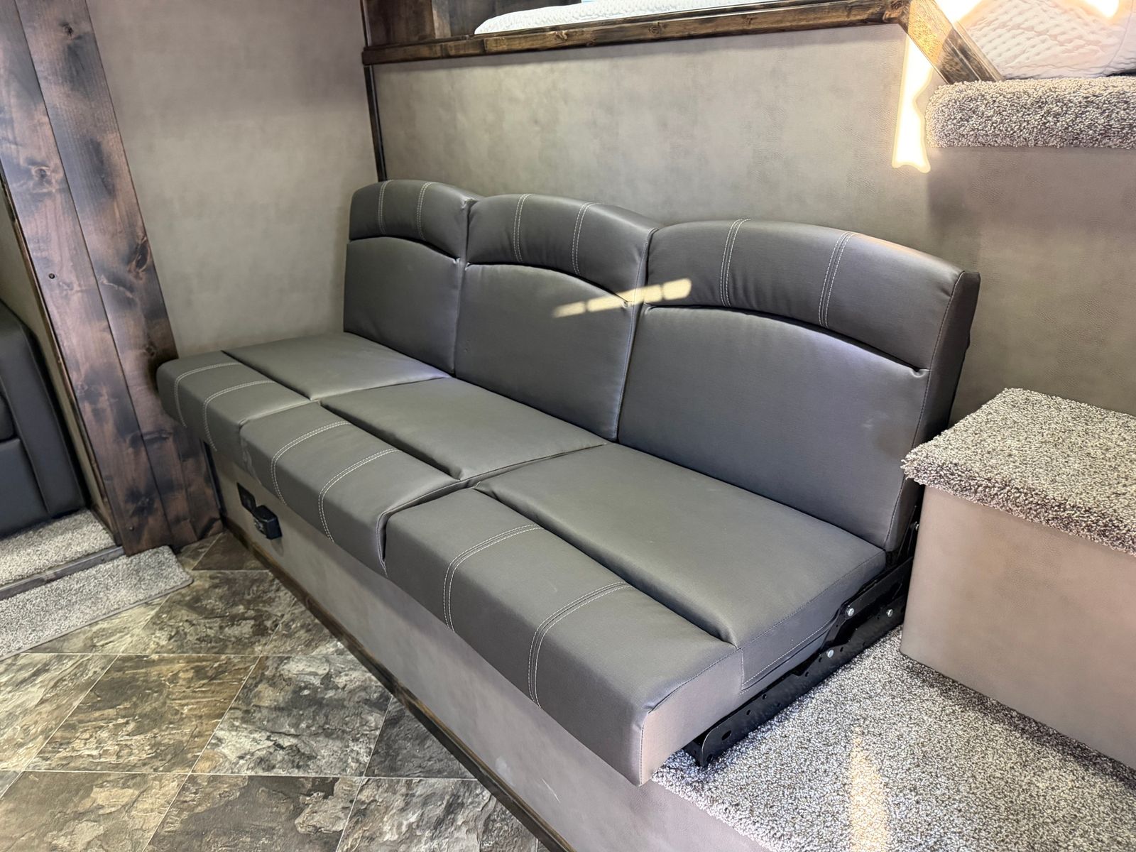 You asked and we delivered! Finally a well built toy hauler that has the strength and quality to last for years of memorable use! Galvanized Structural Tube Frame Galvanized structural tube frame, offers you peace of mind knowing your trailers structure will not corrode from the inside out and also give you a 18-20% stronger frame over trailers framed with raw black steel and 30% stronger than trailers framed with aluminum tubing. 0.50 Aluminum Exterior Bonded w/ 3M Technology 25% stronger than welds and mechanical fasters. 0.50 Aluminum Exterior Bonded w/ 3M Technology 25% stronger than welds and mechanical fasters. Vortex Rubber Vortex rubber spray coating is sprayed to all the exposed galvanized sheeting and tubing. This gives your trailer a smooth, sharp finished look and adds protection and strength to your trailer. Most importantly is makes for the strongest, quietest trailer on the market! Quality Built LQ interior w/ Hardwood cabinets