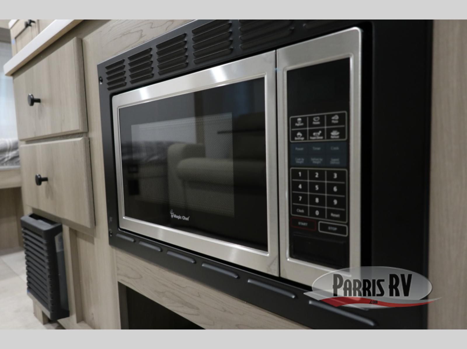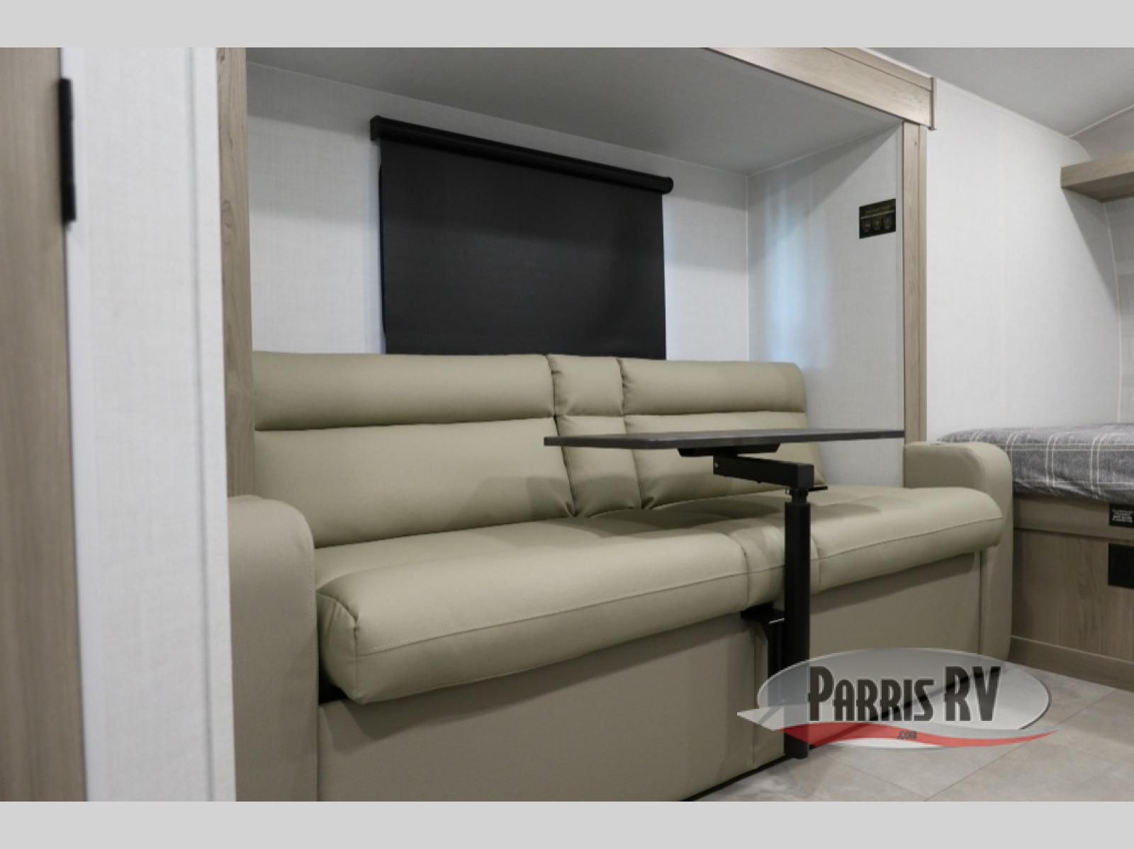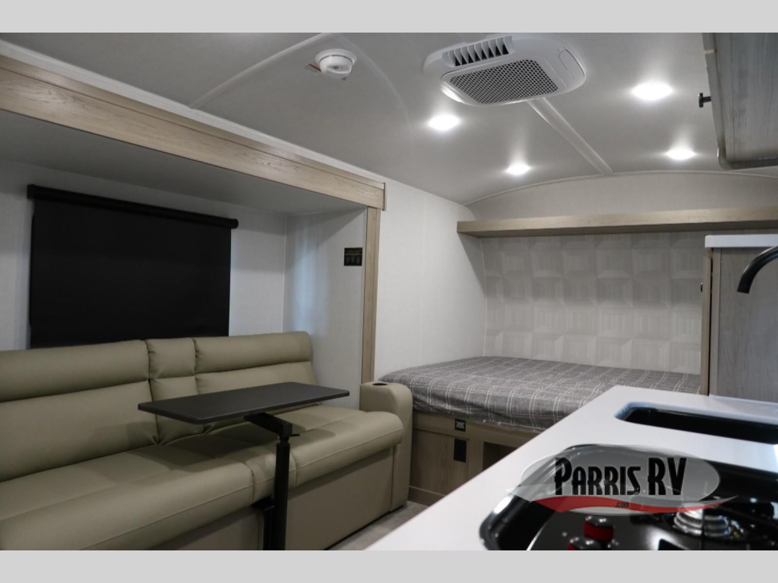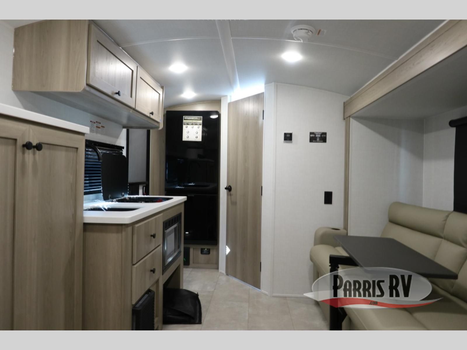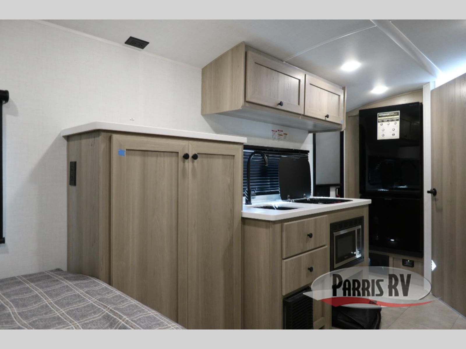 Time spent in this spacious travel trailer will be time well spent! You can wake up each morning on the front queen bed that includes an overhead shelf and a wardrobe close by, allowing you to grab some clean clothes. There is also a rear corner full dry bath, which is a comfort you won't want to camp without. A full kitchen is complete with a two-burner cooktop, microwave oven and a refrigerator, allowing you to cook and store your favorite meals. And don't overlook the sofa with a 30" x 15" table within the slide out for dining or card game space!