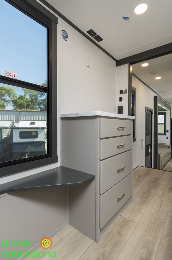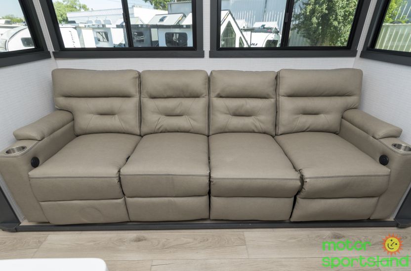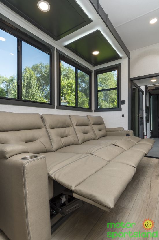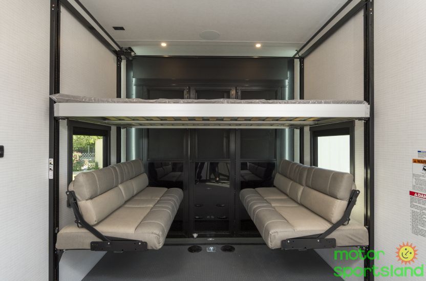 Cutting-Edge Innovation: Equipped with smart technology and energy-efficient systems for seamless control and sustainability on the go. Luxurious Living Space: Expansive interiors featuring premium furnishings and a gourmet-ready kitchen for ultimate relaxation and convenience. Adventure-Ready Build: Robust construction and massive storage capacity ensure you’re prepared for any outdoor challenge or extended trip. Family-Centric Comfort: Thoughtfully designed sleeping quarters, including a plush master suite and versatile bunk options, to accommodate everyone. Outdoor Oasis: Large awnings and exterior amenities create the perfect setup for tailgating, camping, or simply enjoying nature.