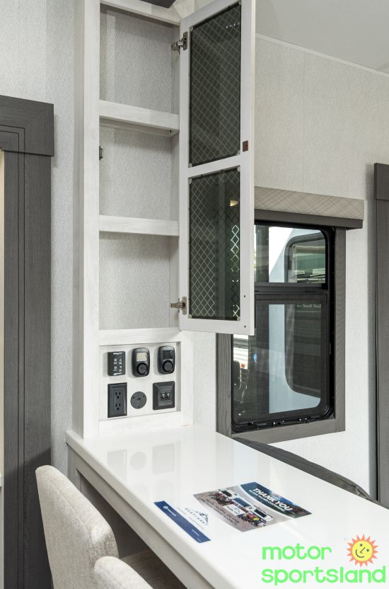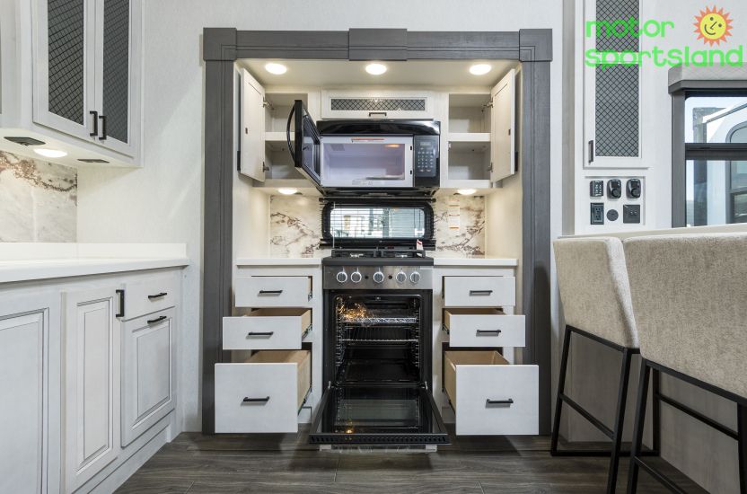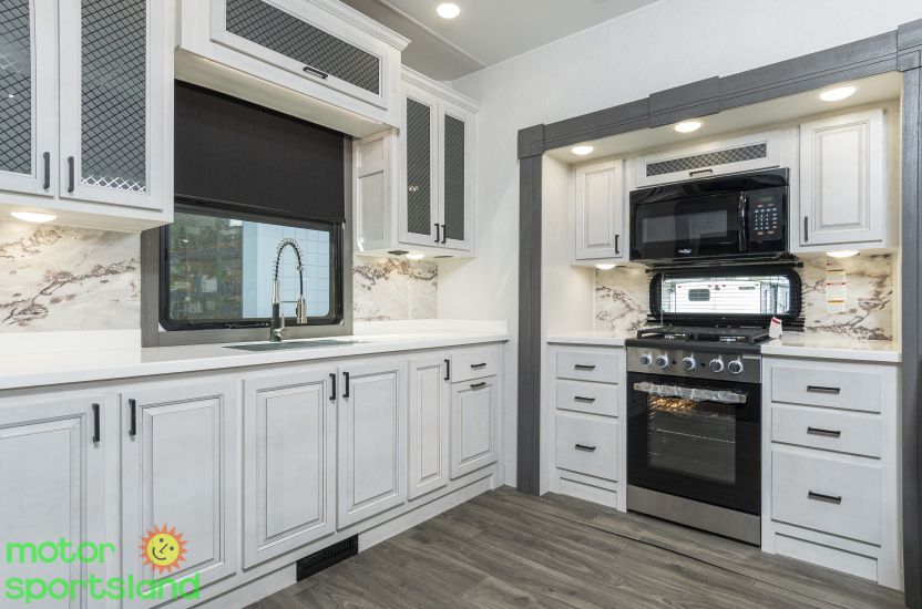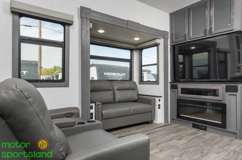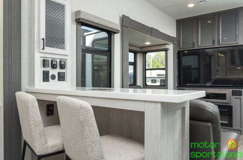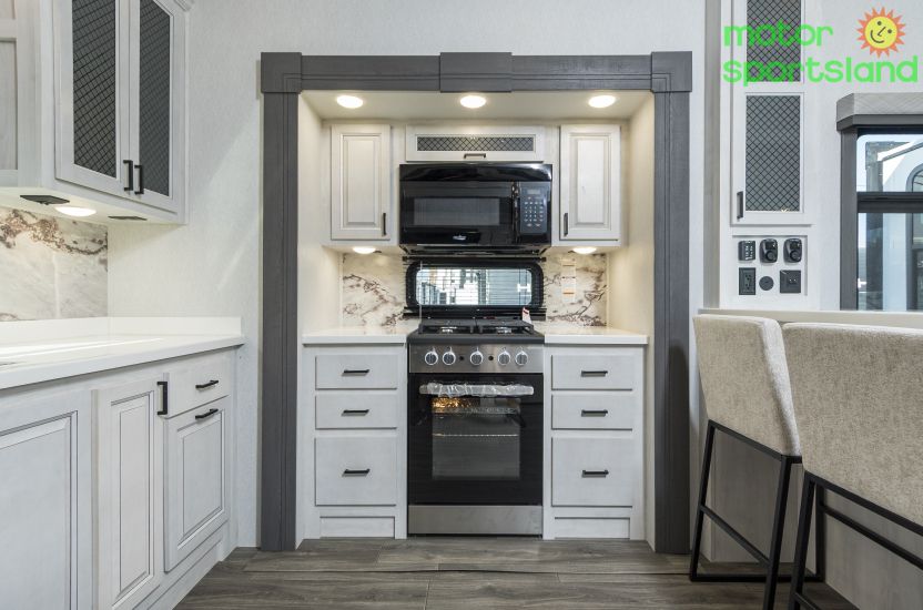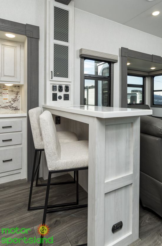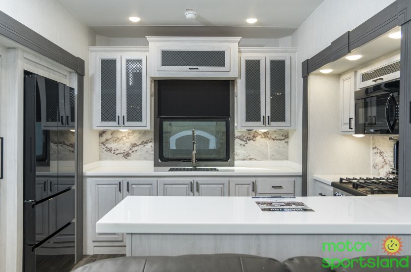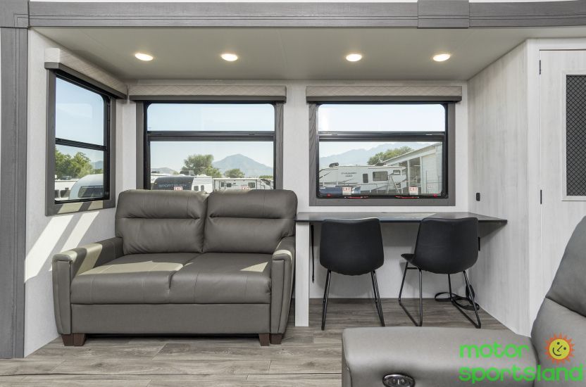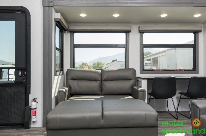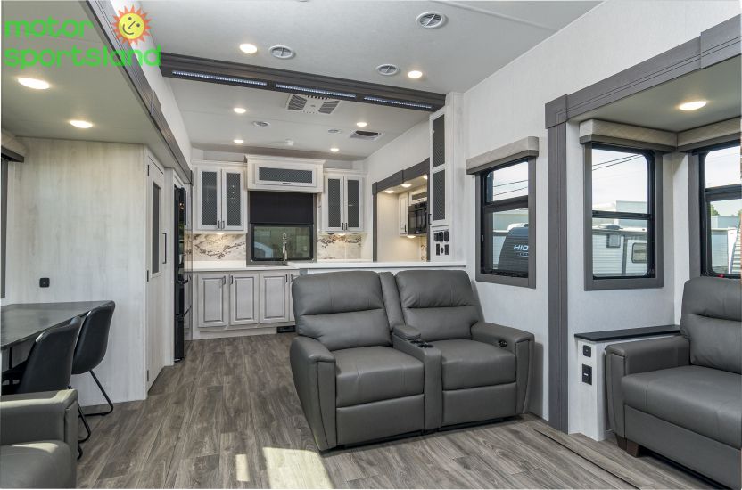 Modern Luxury: Immerse yourself in a sophisticated interior featuring premium furnishings, a sleek electric fireplace, and high-end finishes for a true home-away-from-home feel. Adventure-Ready Design: Built with robust construction and advanced towing capabilities, this Fifth Wheel handles any terrain with ease, ensuring confidence on every trip. Spacious Comfort: Perfect for families, it offers a roomy bunkhouse, multiple living spaces, and ample storage to keep everyone happy and organized. Top-Tier Amenities: Enjoy a state-of-the-art kitchen with premium appliances, solid countertops, and smart technology for effortless meal prep and entertainment.