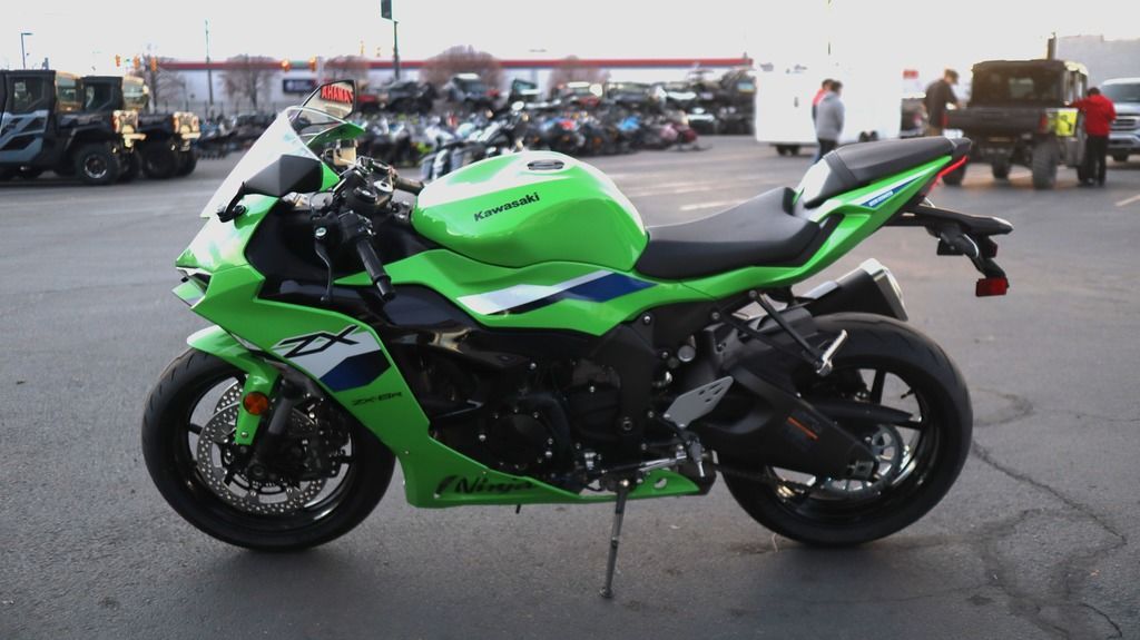 2026 Kawasaki Ninja® ZX™-6R ABS HIGH-PERFORMANCE PRECISION Features may include: POWER FLEX ON THE STREET & TRACK Powered by a potent 636cc engine and advanced performance technology, the Ninja® ZX™-6R supersport motorcycle delivers legendary Ninja® power on and off the track. HANDLING PRECISION PERFECTED The Ninja® ZX™-6R motorcycle gets ahead of sharp turns with optimized engine performance across the entire rpm range, class-leading components, and advanced rider support technology. STYLING BEAUTIFULLY AGGRESSIVE The Ninja® ZX™-6R supersport motorcycle features smooth-flowing supersport styling with 3D interwoven bodywork. ADVANCED TECHNOLOGY HIGH-TECH SUPERSPORT Race DNA and advanced technology is what the Ninja® family is known for. So it comes as no surprise that the Ninja® ZX™-6R supersport bike features the advanced technology and performance you expect from a Ninja. ADDITIONAL: Distinct Ninja® Styling Kawasaki Intelligent anti-lock Brake System (KIBS) TFT Color Instrumentation All-LED lighting Pressed-aluminum perimeter frame Pirelli Diablo™ Rosso IV tires