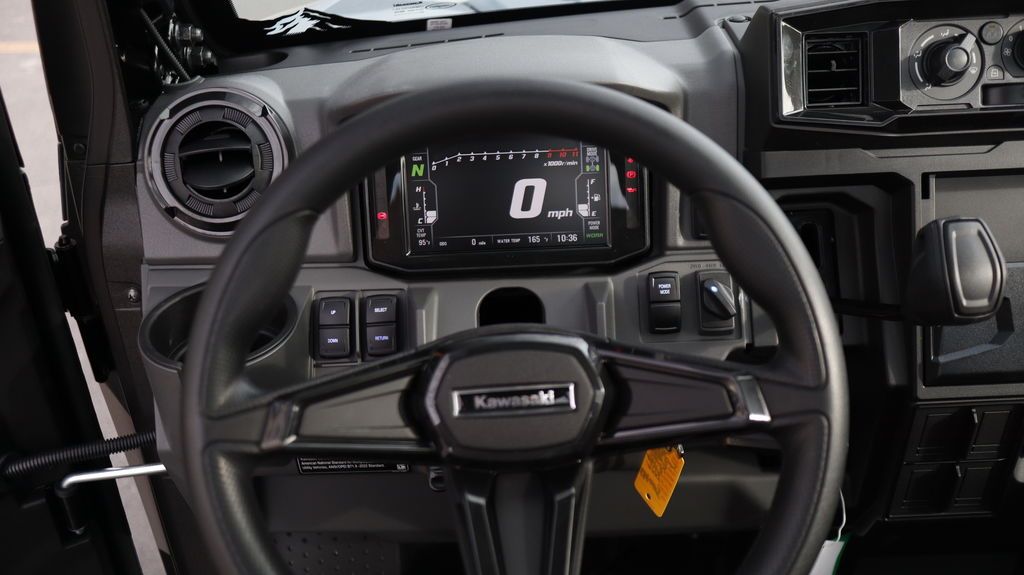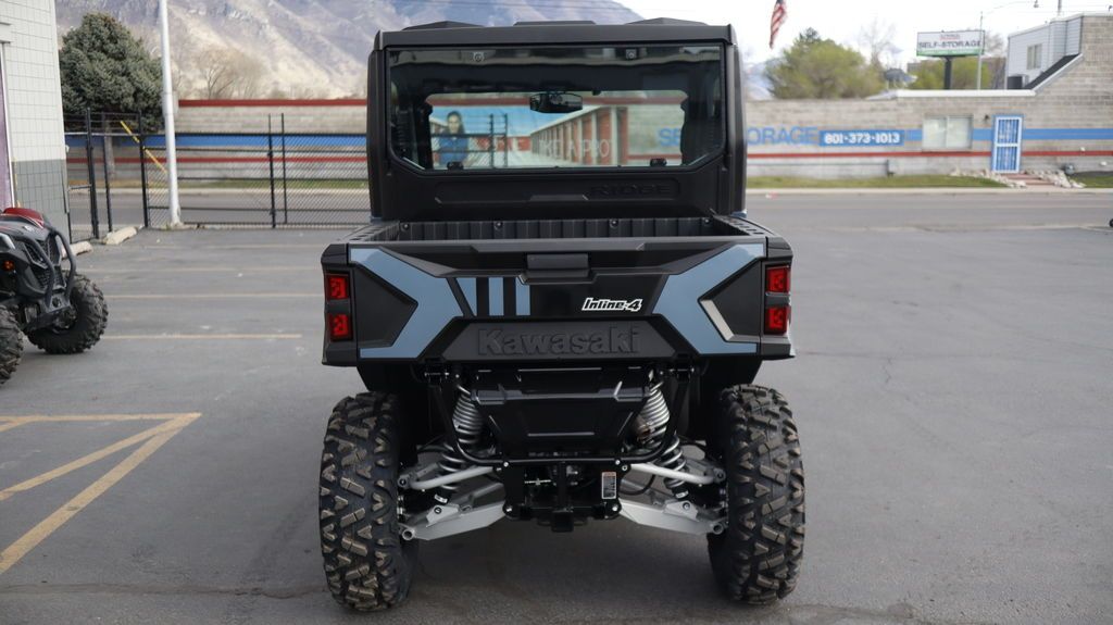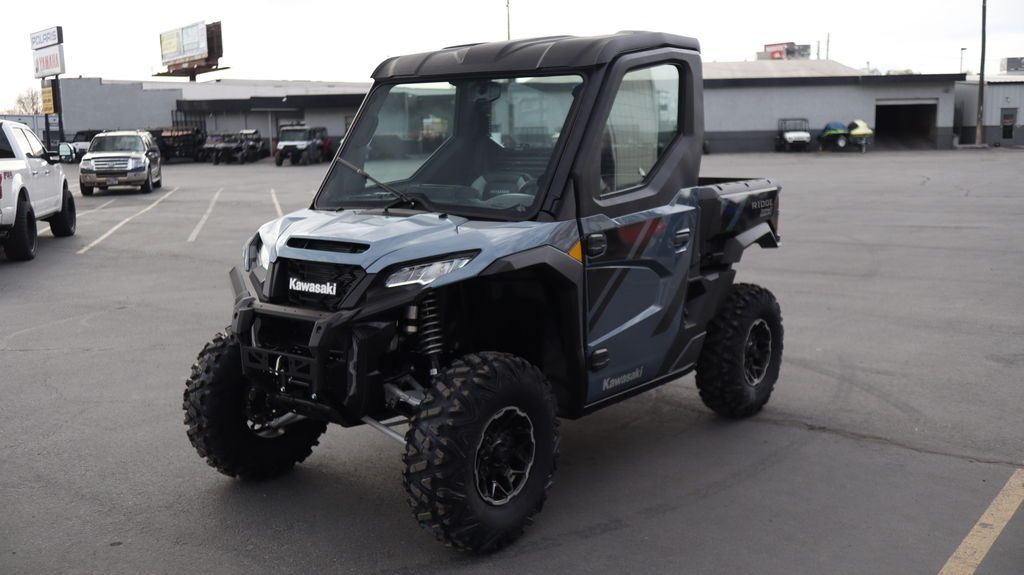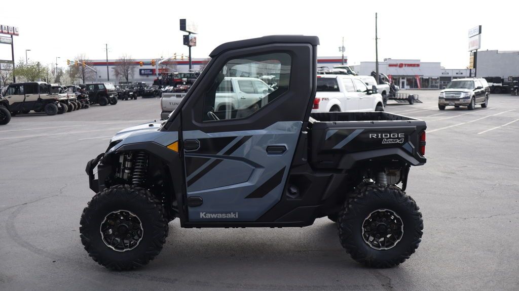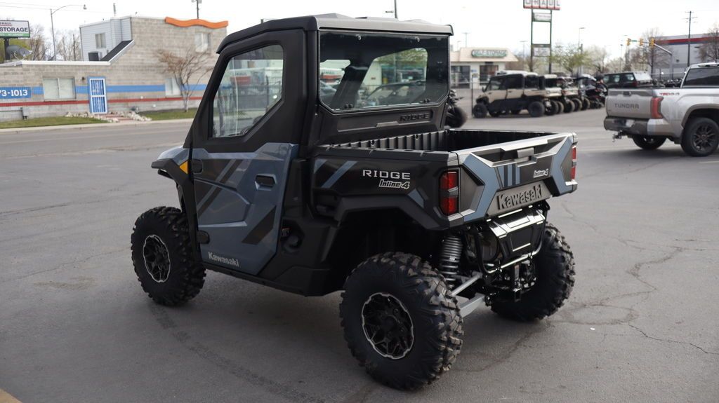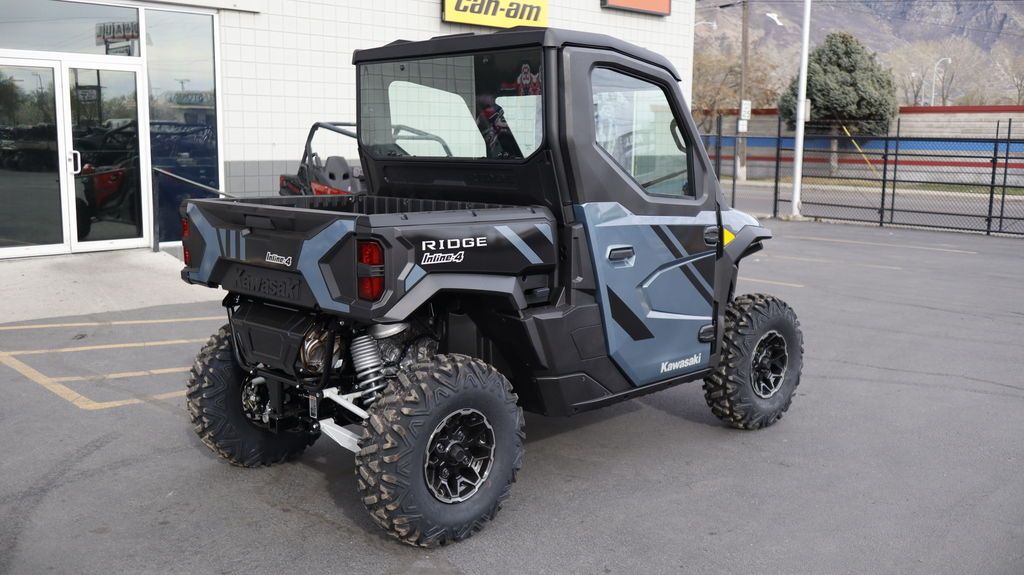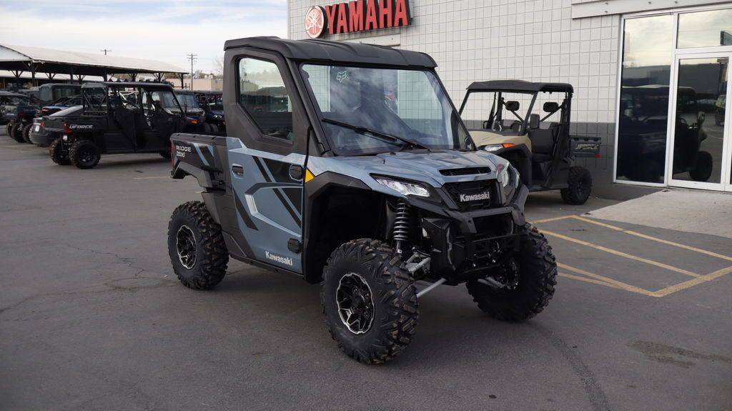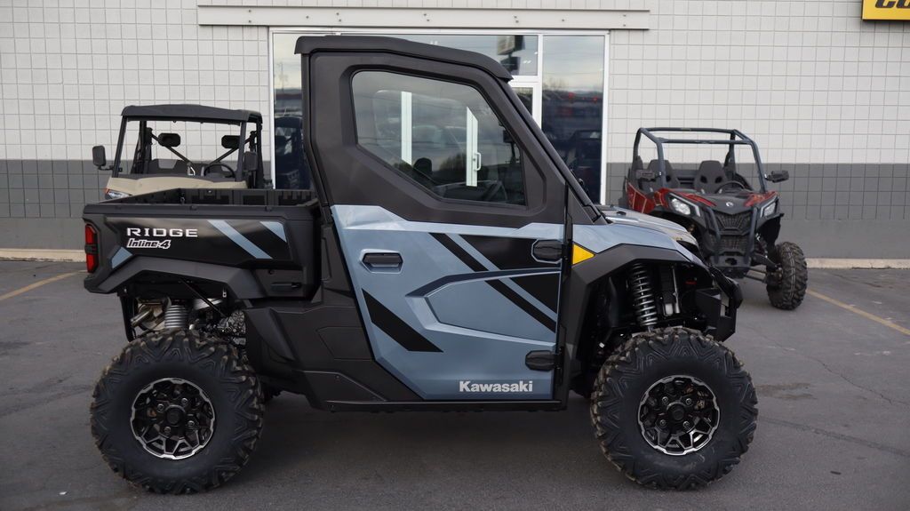 2026 Kawasaki Ridge® HVAC PERFORMANCE UTILITYFOR TOUGH JOBS Kawasaki RIDGE® side x sides raise the standard for those who demand versatile, all-season confidence, and superior build quality. Power comes from a groundbreaking 999cc Kawasaki-built in-line 4-cylinder engine, delivering performance you can count on—on the job and beyond. Features may include: KAWASAKI QUALITY STRONG. DURABLE. RELIABLE. Assembled in the USA with foreign and domestic parts and backed by a 3-year limited factory warranty, RIDGE® side x sides are built strong, reliable, and durable. Developed for peak premium performance, dependable craftsmanship shines in every detail. FULL CAB WITH HVAC MAKE YOUR OWN CLIMATE Models with a factory-equipped full cab come complete with heating, ventilation, and air conditioning (HVAC), creating a comfortable escape from the heat in summer, the cold in winter, and everything in between. READY TO WORK OUTWORK. OUTPERFORM. Built to conquer the day, RIDGE® side x sides blend hard-working utility with refined performance. Heavy-duty towing and hauling capacity, an off-road-tuned chassis and suspension, and a tough exterior deliver serious capability—supported by a cabin full of useful comforts. GROUNDBREAKING 116-HP¹ SMOOTH & POWERFUL RIDGE® is the first Kawasaki side x side with a 4-cylinder engine, delivering a refined, automotive-inspired riding feel with strong, smooth power across the range. The 999cc in-line 4-cylinder engine—paired with a smooth CVT and efficient intake and exhaust—responds with confidence whether you’re working hard or riding for fun. Selectable Power Modes and 4WD with front and rear differential lock* add another layer of control in low-traction conditions. PREMIUM AUTOMOTIVE FIT & FINISH A BETTER RIDE RIDGE® side x sides ensure class-leading comfort with premium fit and finish. Thoughtful, automotive-inspired touches, from tasteful interior lighting to high-grade materials and spacious accommodations, keep every ride fresh. A high-tech cabin includes a full-color display, built-in smartphone connectivity, and Kawasaki’s exclusive RIDEOLOGY THE APP POWERSPORTS† to keep you connected and informed. ADDITIONAL: Factory standard full cab with heating, ventilation and air conditioning New front stabilizer bar Updated CVT settings offer quieter engine operation Enhanced cabin sound dampening helps minimize unwanted noise New lower seat height and optimized driver ergonomics Adjustable driver’s seat with 2.5-in range Ladder-type frame fortified with high-strength steel Selectable 4WD with locking front/rear differential 30-in tires with 14-in aluminum wheels Full doors with powered glass windows Detachable tailgate, 3-point accessible cargo bed