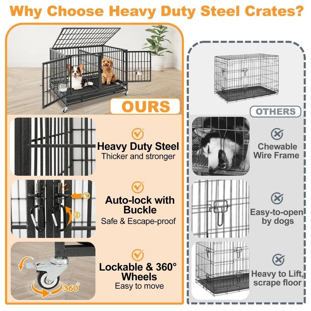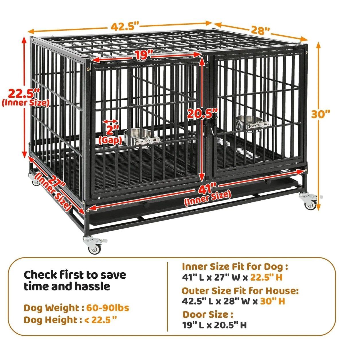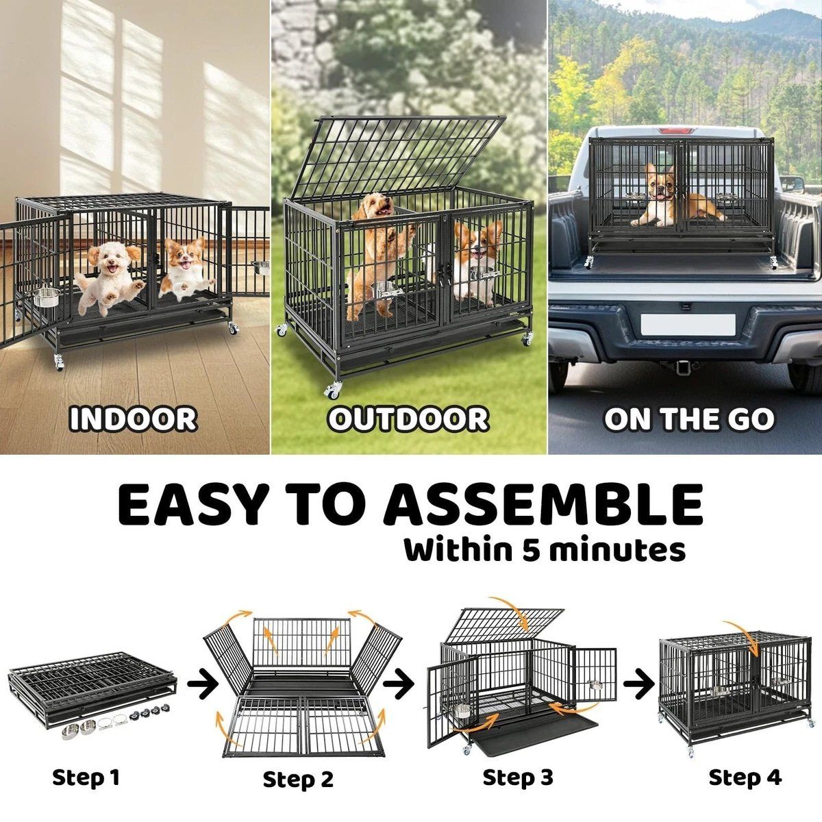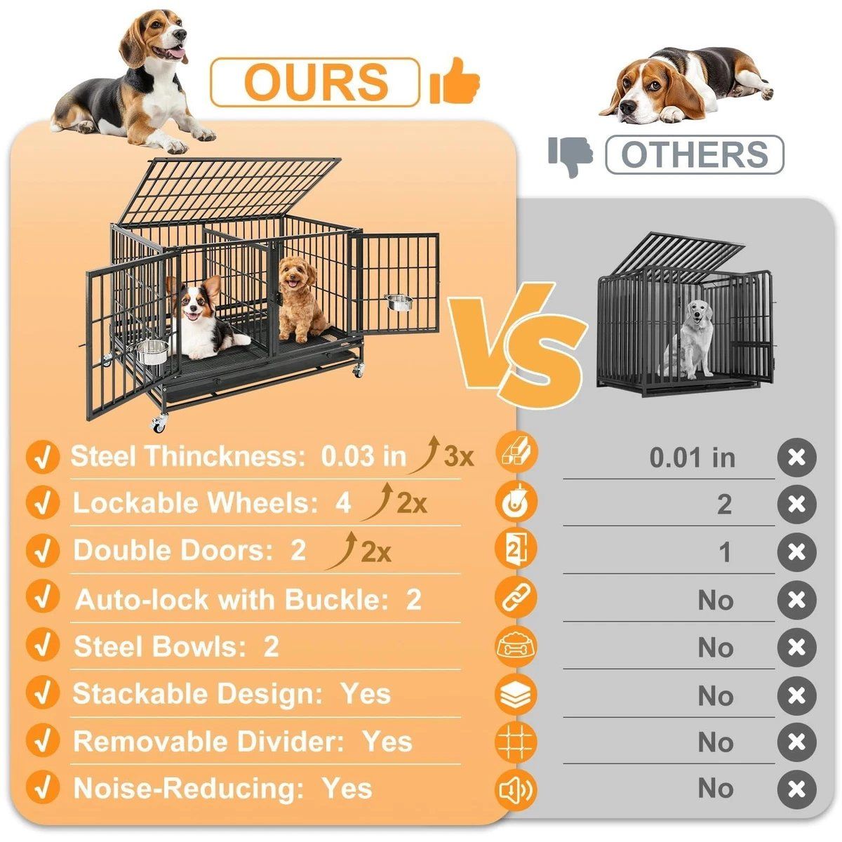 VenmoHomey Pet 43 Inch Dog Crate, Heavy Duty Stackable Dog Crate Cage Kennel