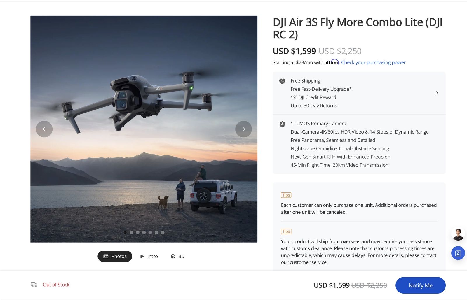This a step up from most DJI drone models. These are out of stock at DJI, the world’s leader in drone manufacturing. They retail at $1400 without the accessories.