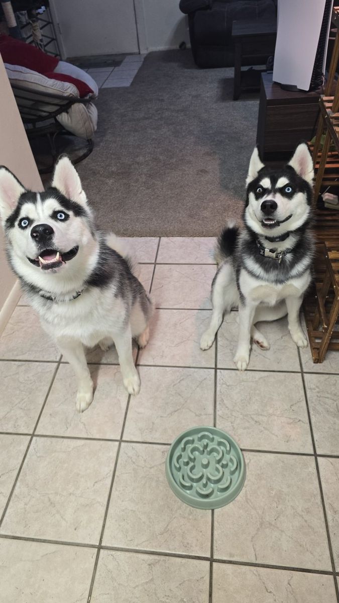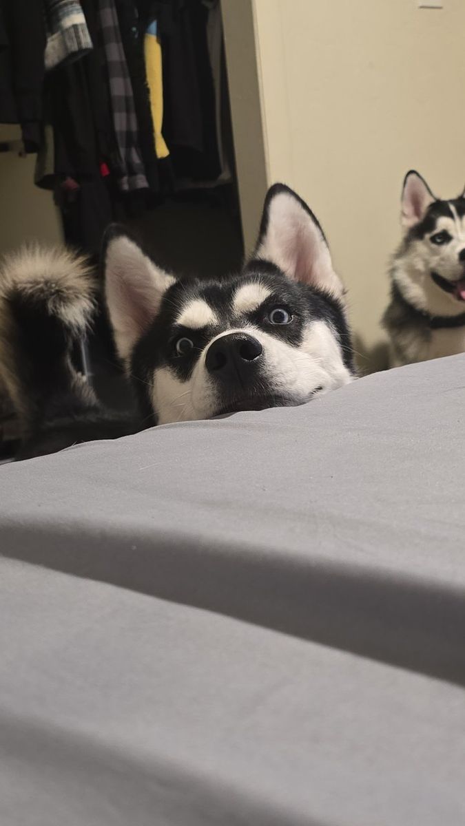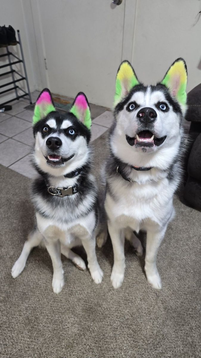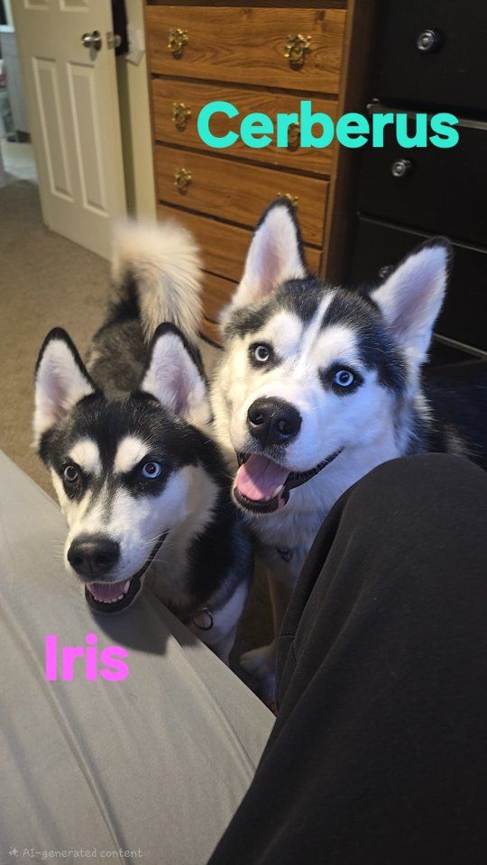 We have 2 beautiful huskies for free. We are wanting to keep them together. They're brother and sister, their birthday is May 4 2024. They both have unique wonderful personalities, they love EVERYONE. We cant keep them anymore unfortunately but we want them to go to a good home, preferably with a yard for them to run around and play. The boy's Cerberus and the girl's Iris.